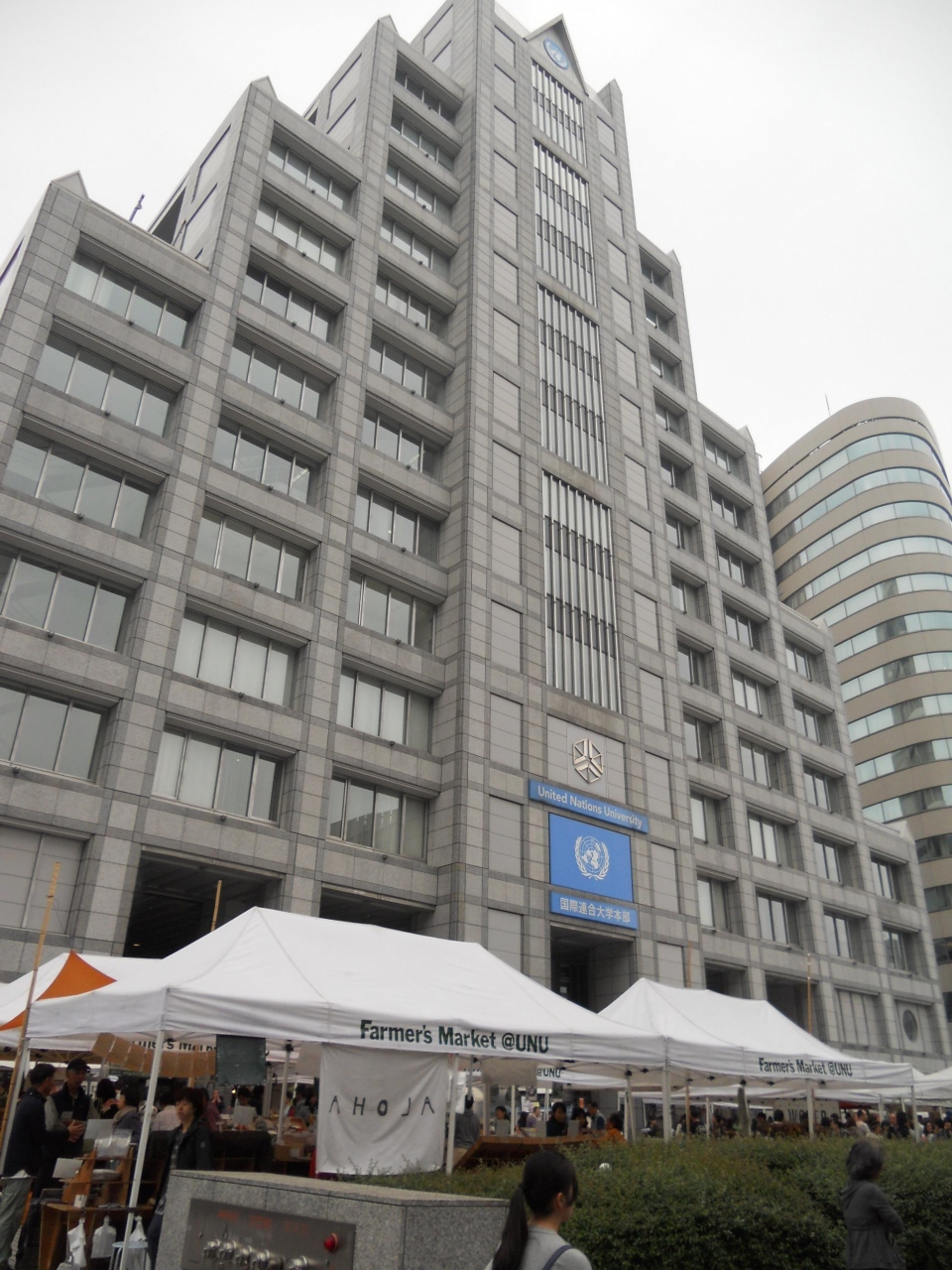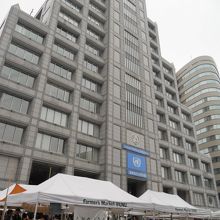 久々の青山エリア訪問でしたので、渋谷からずっと「青山通り」を歩いて表参道まで行ってみることにしたのですが、途中、特に左側に個性的なビルがたくさんあったので、いろいろ眺めてきたのですが、その中の一つがこちらの「国連大学本部ビル」です。