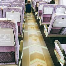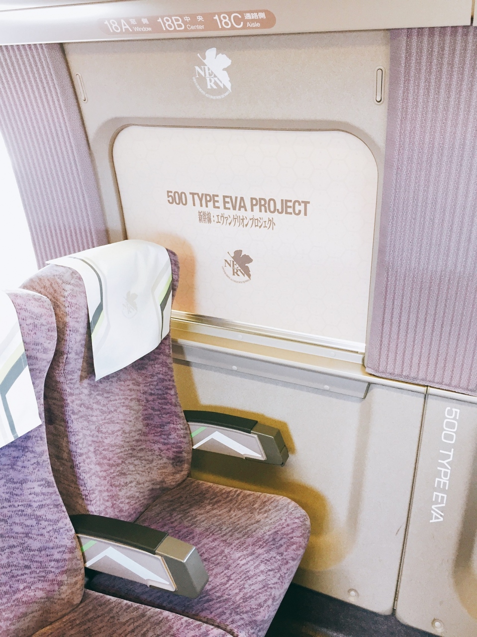 車両のラッピング自体もかなり気合入っていますが、1号車は座席を全て撤去して、フォトスポットや実物大コックピット搭乗体験が出来るスペシャルなスペースになっています。 2号車は足元から天井まで、エヴァンゲリオンの世界です。 窓のシェードまで! こだわりが感じられます! 3号車以降は普通の新幹線ですが、6号車は元がグリーン車なので、2x2席で贅沢に移動できますので、指定席を取る場合はこちらをオススメします!