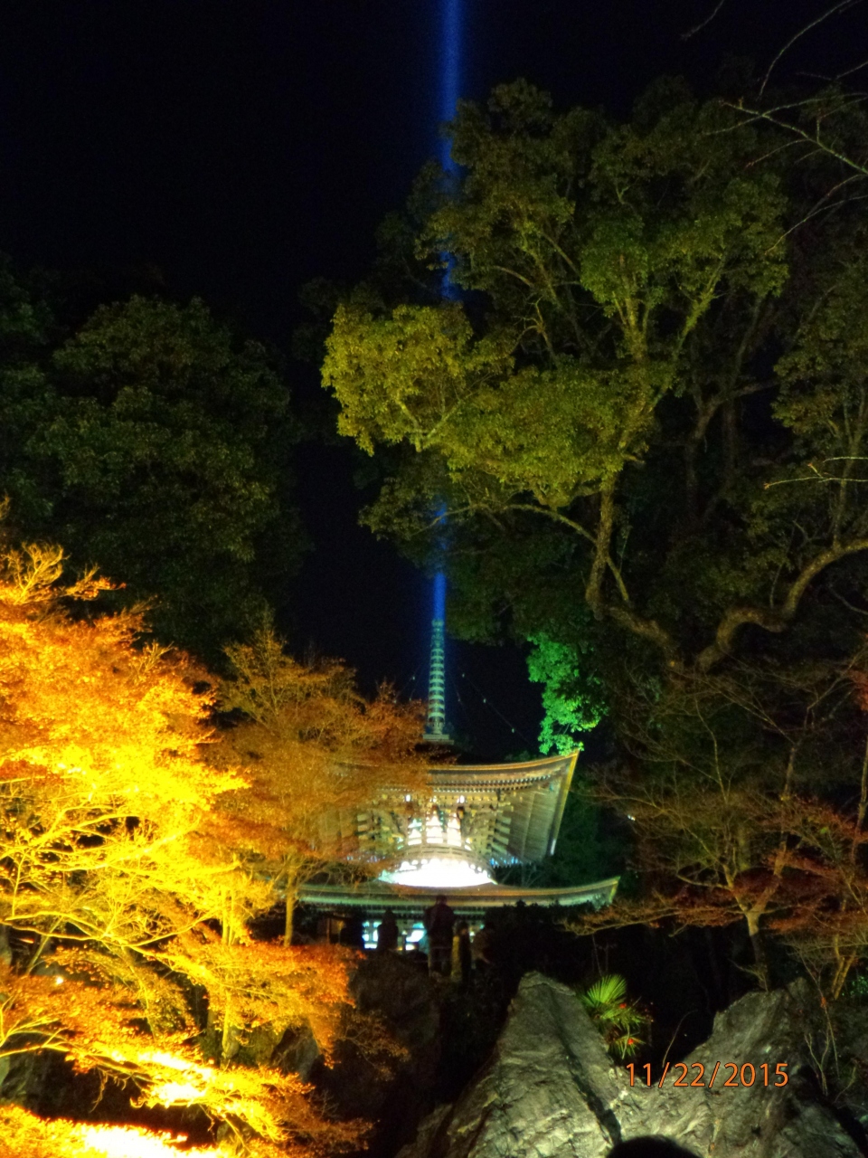 夜は夜で、もみじのライトアップがされていて、多宝堂から青い光が出てなかなか幻想的です。 昼間はそのような演出はありませんが、周りの紅葉が同じくらい素晴らしい演出をしてくれています。
