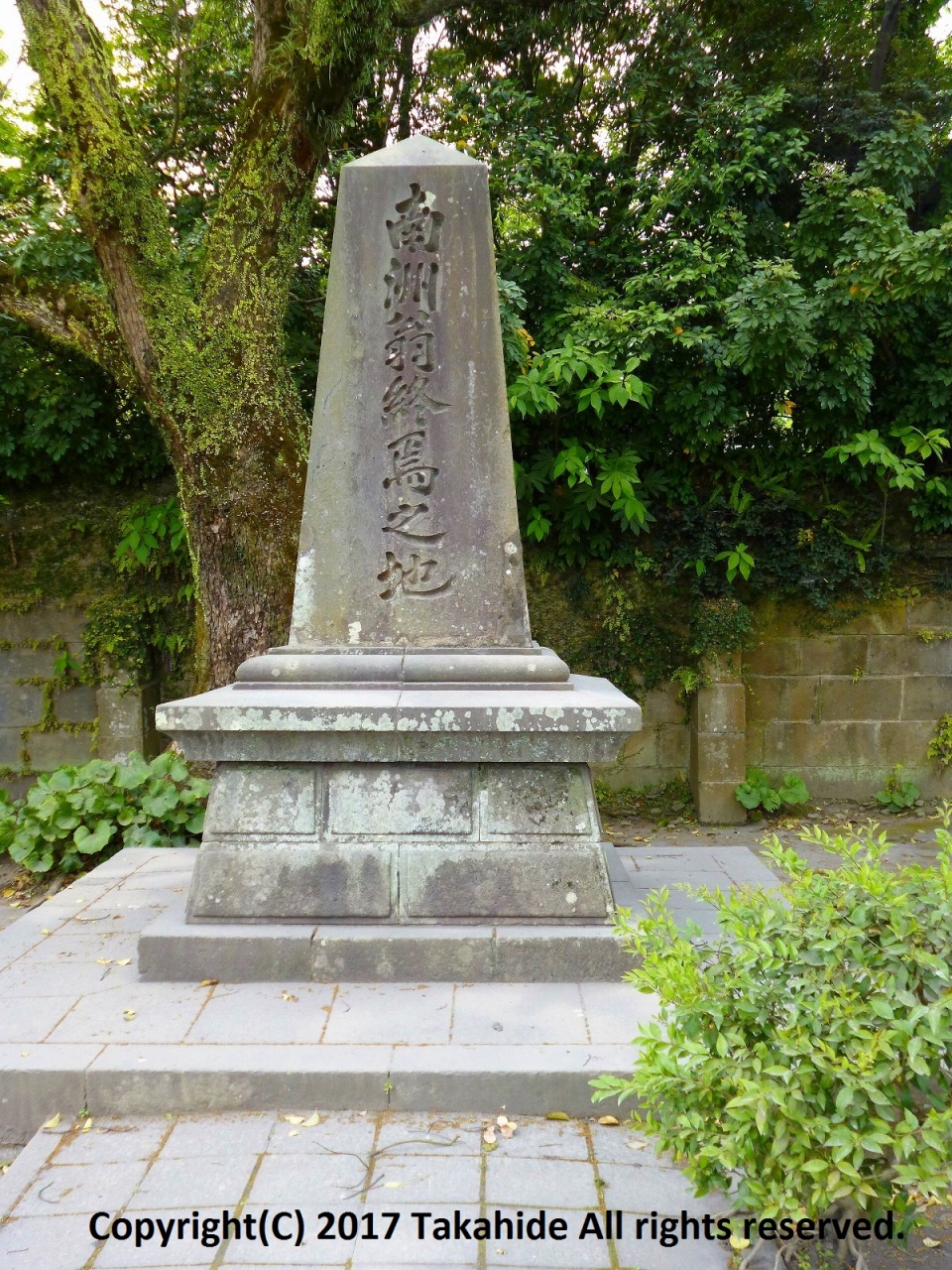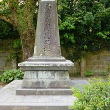 城山公園から西郷洞窟を経てさらに坂を下っていくと、道路に面した階段を上ると狭い敷地の中にぽつんと石碑が立っています。