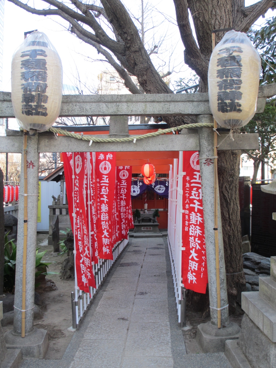 江戸時代から地域と深いつながりがあった稲荷神社です。時代ごとに地域に住む人々の生活や職業が異なっていましたが、いつの時代も千種稲荷神社を大切にすると災害が無くなったと信じられてきました。今は千種講の人々が保存に尽力し、錦糸公園の桜を植えたりしてきました。錦糸公園内の鳥居が目印です。狭い境内に設置された碑や幟から信仰を集めていることが分かります。手水盤を囲む柵に珍しい4匹の狐の石像が置かれています。公園内の神社という特徴から訪れましたが、説明板からこの地の歴史を知ることができました。地域の歴史を知りたい方におすすめです。
