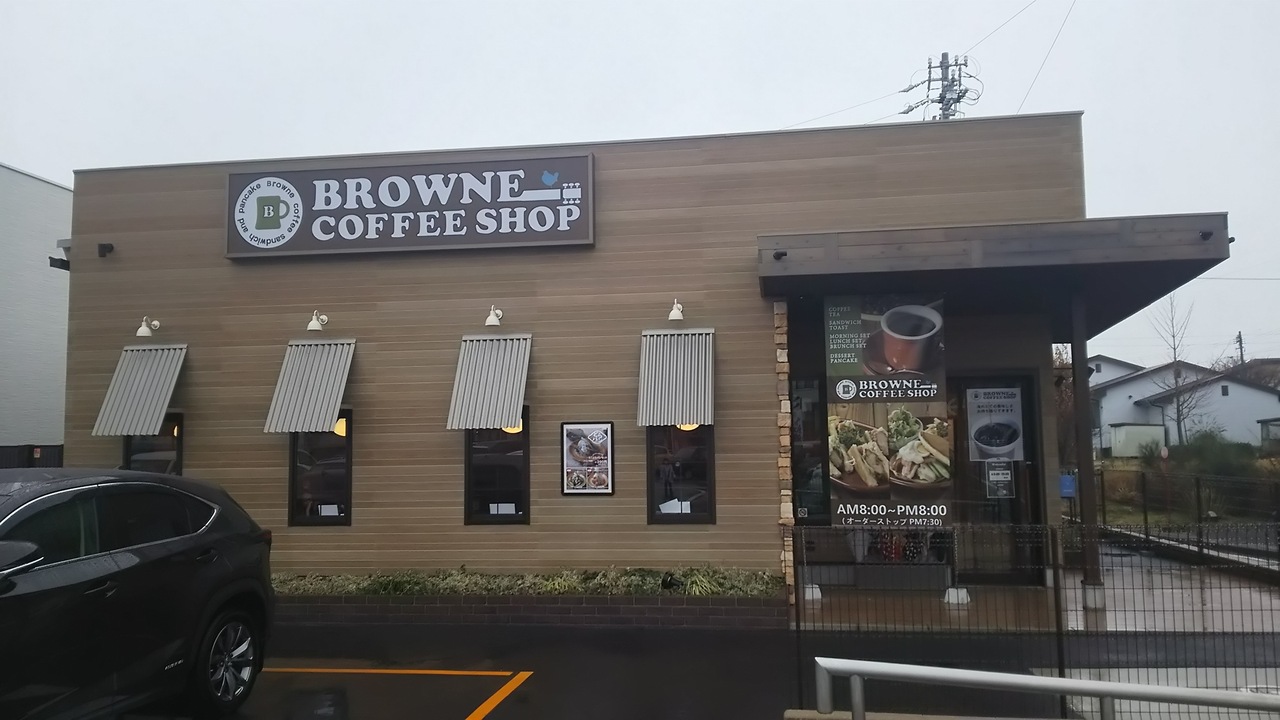 毘森公園の南側、かっぱ寿司の隣にある喫茶店。名前のとおり外観、内装はブラウン色に統一され、店内ではジャズが流れるおしゃれなお店。ブレンドコーヒーとパンケーキを頼みました。コーヒーはほどよい苦味があり美味しかったです。一人分のオレンジジュースを子供2人分に分けてくれるサービスには感謝です。