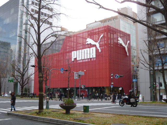 心斎橋の大丸を楽しんだ後、御堂筋を挟んで向かいにある「オーパ」と、こちら赤い外観が目立つ「プーマストア」を訪問。言わずと知れドイツ生まれのスポーツブランド「プーマ」の商品専門店で、ゆったりした館内にはシューズやウェアなど豊富に陳列されていました。若いころに好きで履いていたブランドなので、懐かしくて館内をプラプラ見て回りました。商品を販売するというだけではなく、イメージ発信基地としての役割を担っているように感じました。