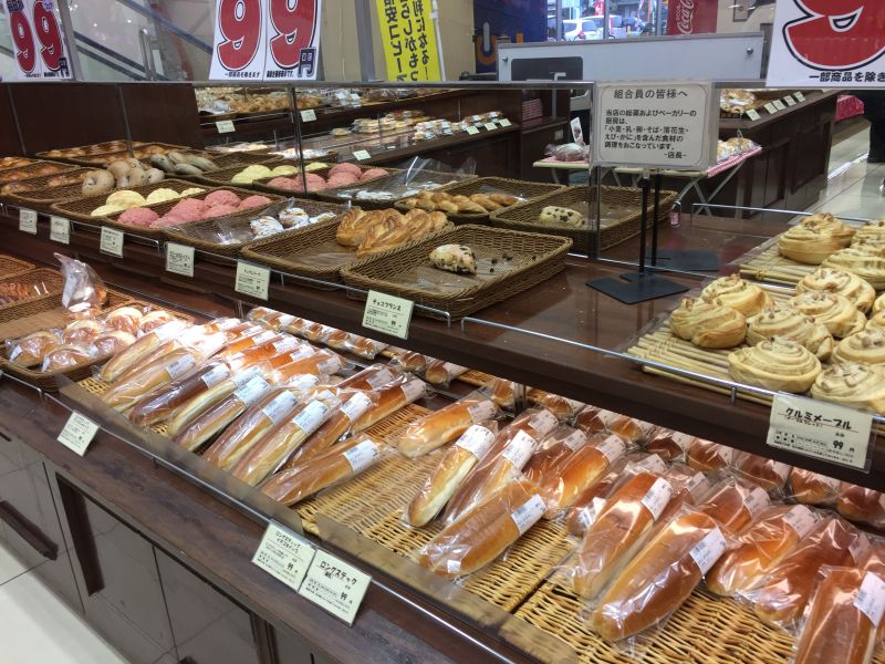 調理されたパンを自分でトレイに取るタイプの店ですが、その価格が驚きです。シンプルなパンから料理パン、バケットまで99円。この手のベーカリーでこの値段は安いです。