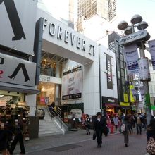 渋谷センター街にある路面店で、大きなゲートのような造りが特徴的ですぐに分かります。レディース商品の品揃えが豊富で、私が訪問した時には春を意識した明るめの薄めのセーターやジャケットなどが並び始めていました。平日の昼下がりでしたが観光客を含めて大勢のお客さんで賑わっていました。