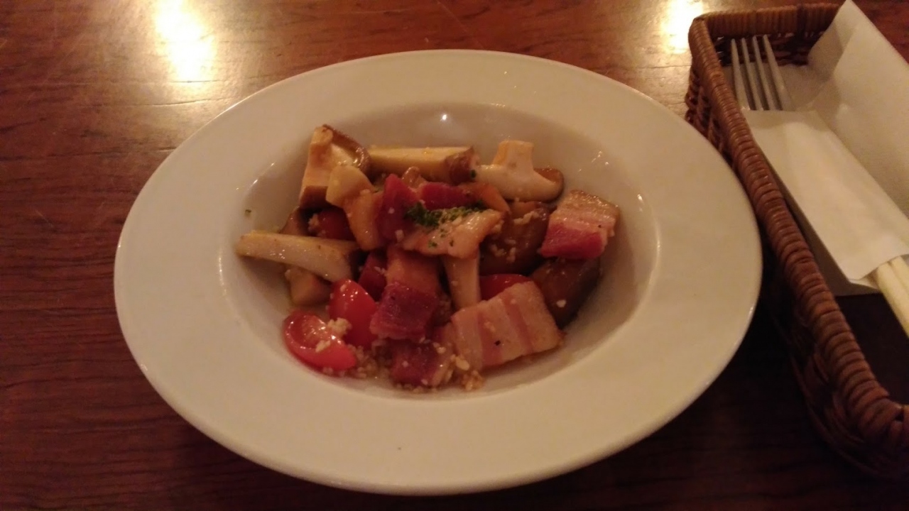 食事は軽いつまみからパスタ、ピザからセットディナーなど使い勝手に応じていろいろあるが、シンドラーさんのベーコンは脂身がおいしい本格的なものでキノコとガーリックで炒めたものがビールにあう。