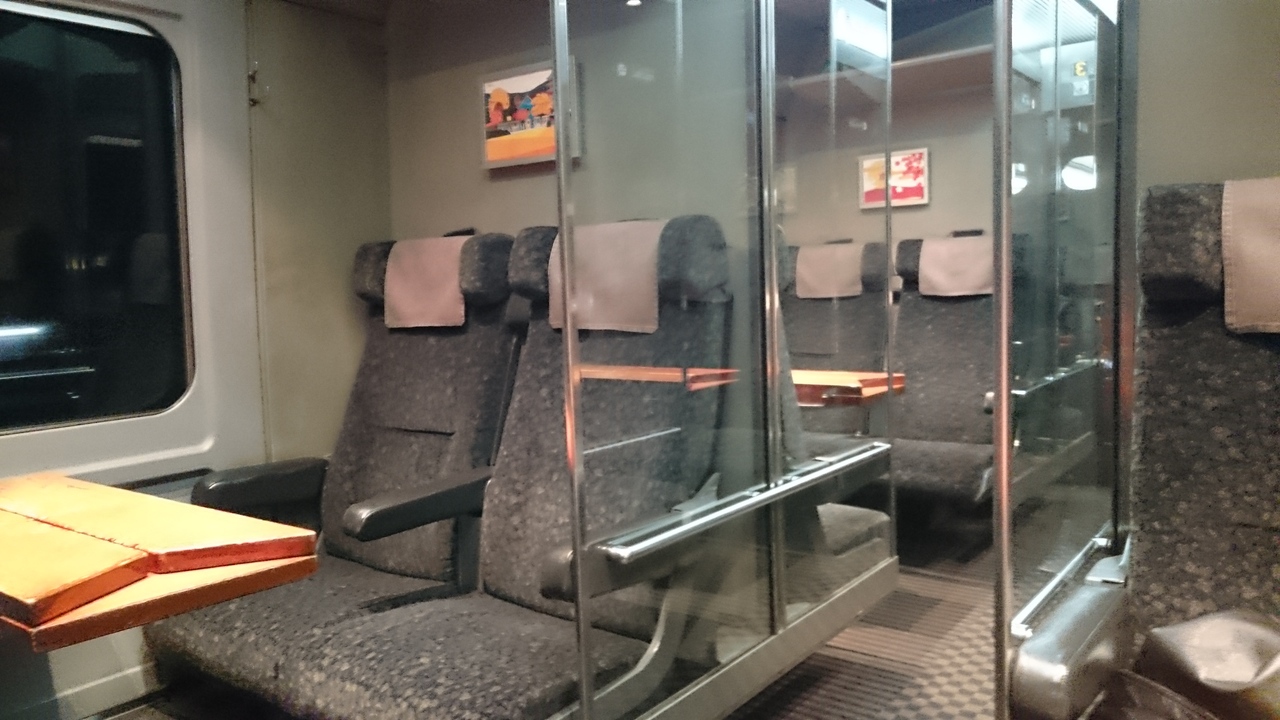 指定席を予約し一旦は座っていたのですが、お手洗いに行く際に自由席を通るとガラガラで、しかもコンパートメントシートという区切られた座席もあり早速移動。