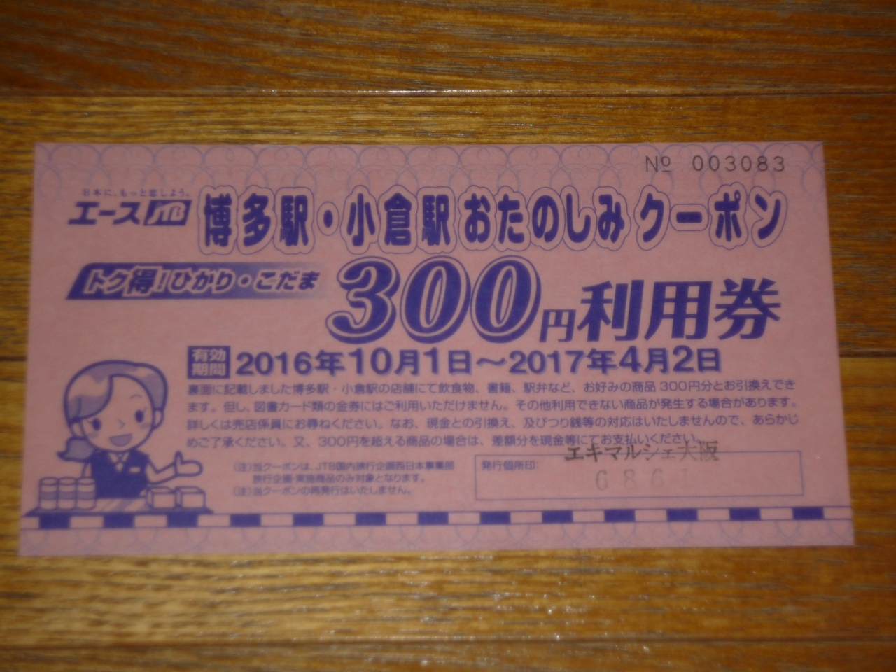 新大阪-博多 7600円(お楽しみクーポン300円付)を購入しました。