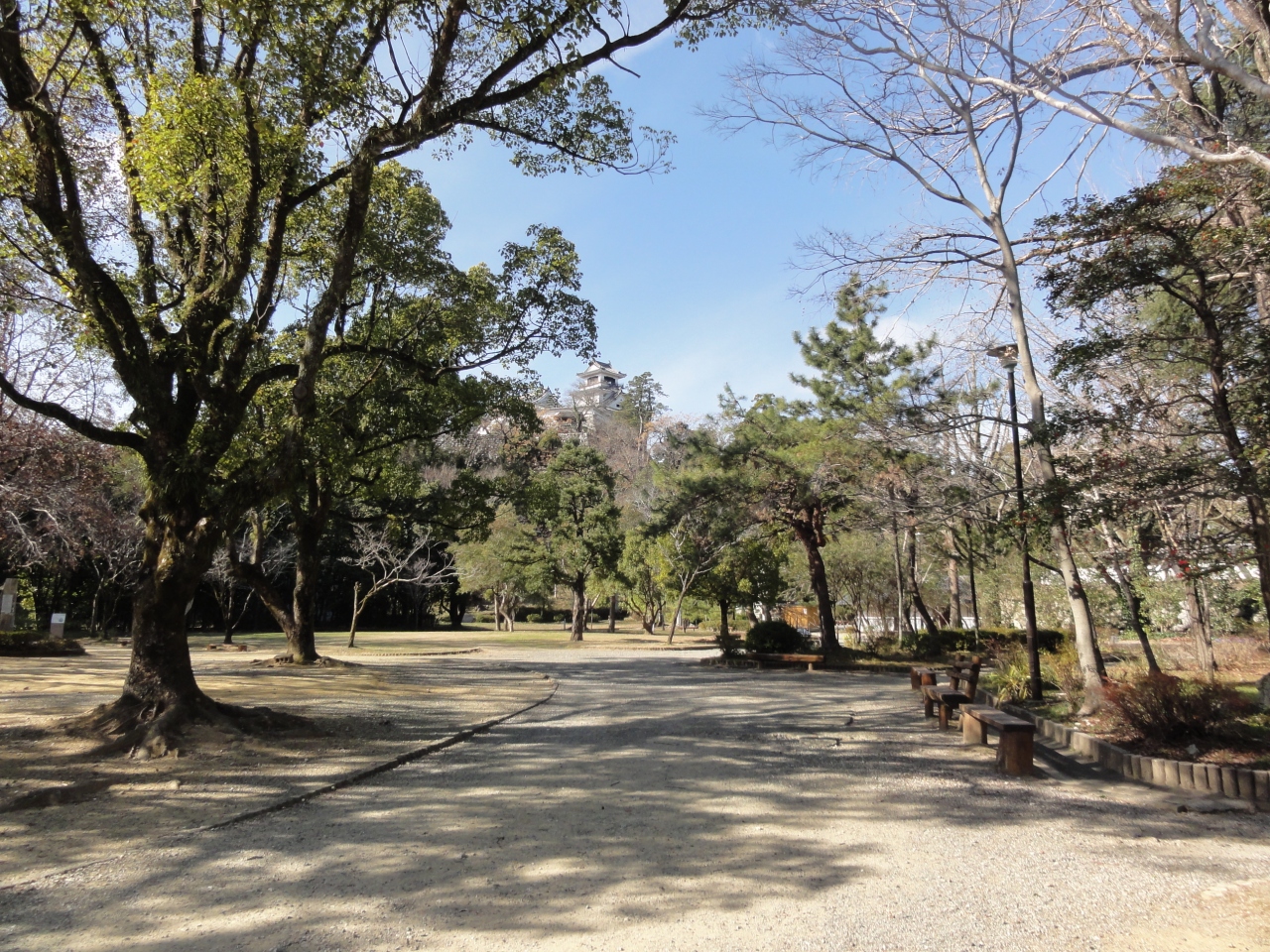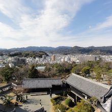 路面電車高知城前から徒歩5分、天守を目指して歩くと公園が見えてきます。城を中心にした公園で天守から見るとかなり広かったです。いち早く公園にすることで明治政府の廃城令を免れ存続が認められたそうです。歴史ある建造物を守るために作られた公園とは知らなかったです。現存天守の中で本丸すべての建造物が完全に残ってるのは高知城だけだそうです。
