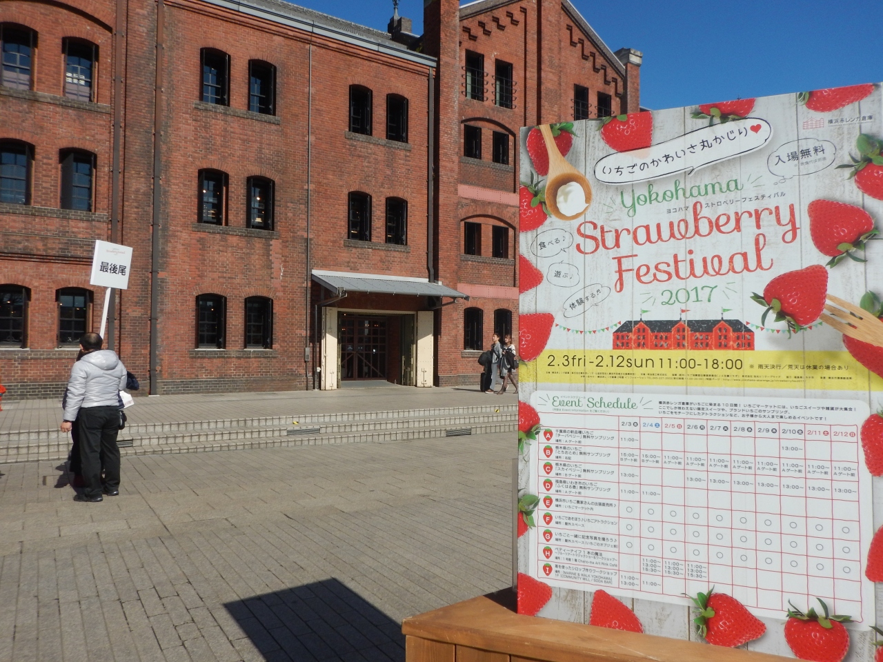 ホテルJALシティ関内に泊まった時、ホテルに置いてあったパンフレットで、横浜赤レンガ倉庫でストロベリーフェアをやっていることを知り、さらにイチゴの無料配布もやっているようなので、張り切って行ってみました。行ってみるとすごい行列で、並んでも自分のところまで無料イチゴがあるかわからないので諦め、店内にはいりましたが、中にはいろいろなレストランやお店があり、みてまわるだけでも楽しめました。