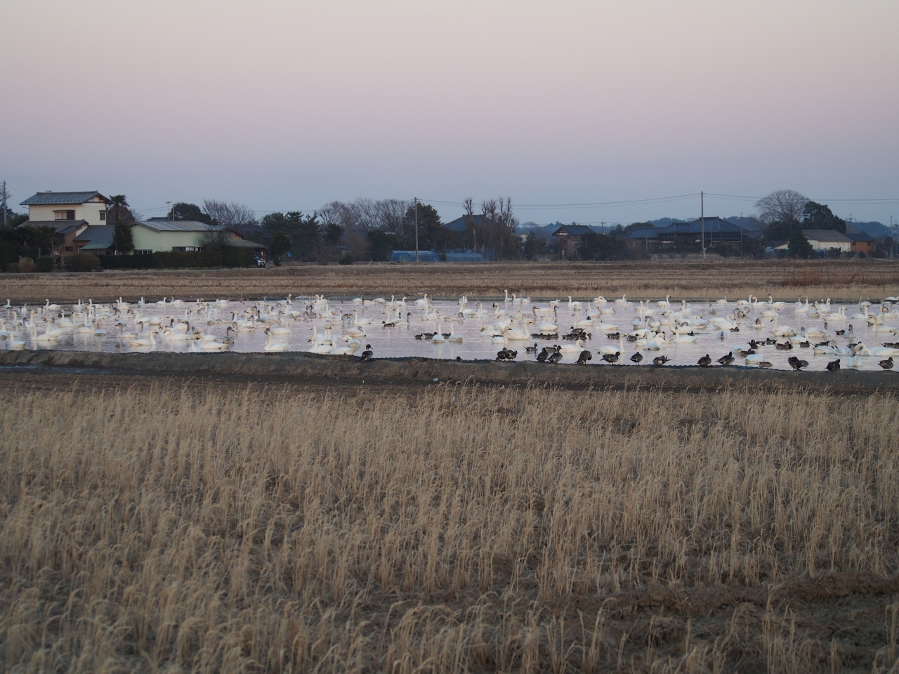 千葉の印西市の田んぼに、何百羽の白鳥が飛来します。水を張った田んぼが一面真っ白になっている程です。駐車場はなく、農道に縦列で何十台も車を停めていました。すぐ近くまで寄れるので見応えがあって、楽しめます。