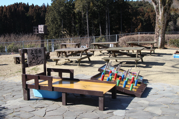 比較的大きなサービスエリアで必要なものは揃っています。建物に向かって左側の空地にふれあい広場があり、輪投げやミニボウリングなどがあり子供が遊ぶには良さそうな感じでした。周りにはテーブルやベンチもありました。