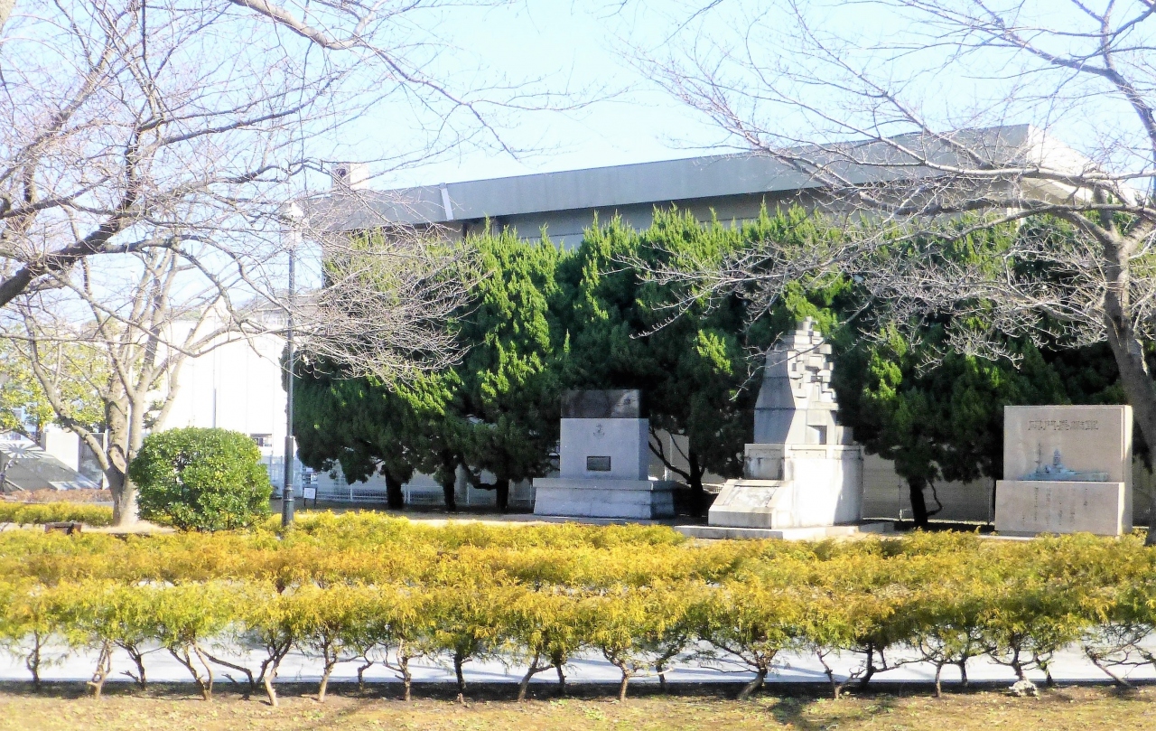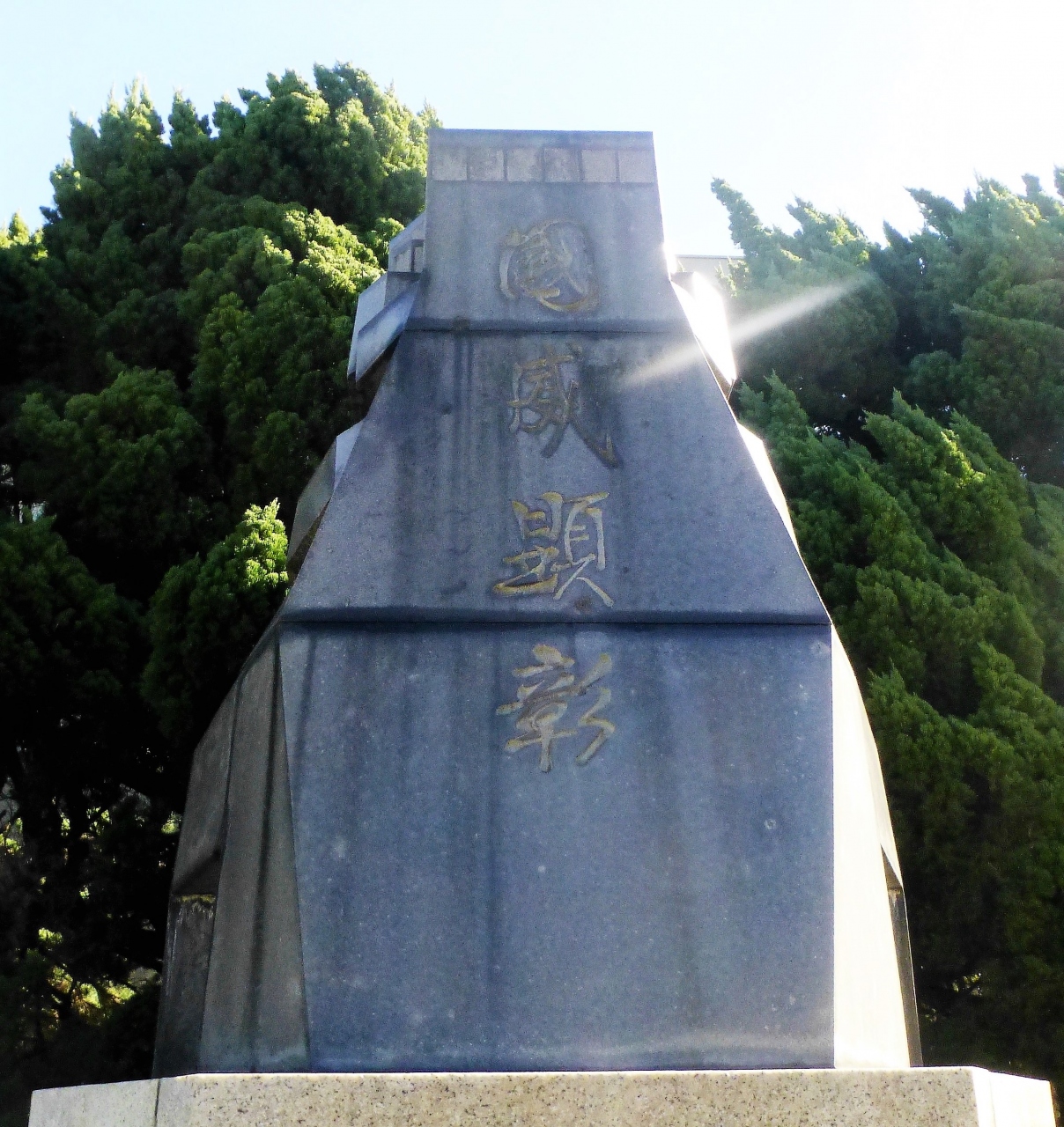 ヴェルニー公園のショッパーズプラザ側から海辺に`石碑群`があります。中でも`艦橋型`の石碑が目を引きます。近づくと「國威顕彰」碑でした。国が`國`とあるので戦前の石碑だと思いました…石碑群に入ってヴェルニー公園の遊園人/散歩人/一休みの人に見てもらい`顕彰碑`の役目が果たせて良かったネ(^^?!)。