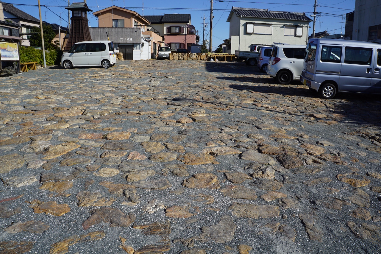 北雁木は、舞坂宿の渡船場。ここから新居宿まで今切の渡しというルートがあって、その船に乗るためのもの。なだらかな傾斜には大きな石が敷きつめられていて、たぶん、ここに船を引き揚げたりしてもびくともしないといったことだったのではないかと思います。南雁木というのもあって、そっちは今は残っていませんが、庶民用。こっちは身分の高い人用のものだったということです。