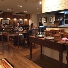 入り口が狭く入りにくい店内ですが いつも混んでます。ランチはケーキ付きのサンドイッチか、ホットサンド、ケーキ無しでチョイス出来 ドリンク付きで1400円以内という感じなので ちょっと店の感じからするとお高いです。この値段出すなら もっとゆっくり食べたいです。他にキッシュやサラダセットでパンのビュッフェ付きなどもありました。もう少し広いお店にして欲しいです