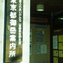 地図を貰いに入ると、にこやかなおじさんが迎えてくれました。御岳インフォメーションセンターと看板は上がっていましたが、車道側には東京都御岳案内書と書かれた看板が上がっています。