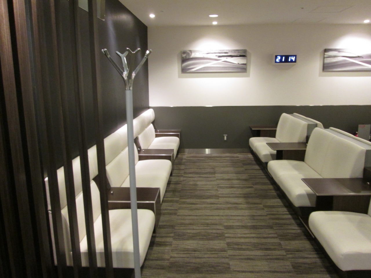 関西空港国内線のANAラウンジは狭く、座席の数は少なかったです。21時を過ぎると、関西空港発は羽田方面が残る程度になります。カウンターでの搭乗チェックインは待ち時間なしでした。このため、ラウンジ自体も利用客が少なく、ほとんど貸し切り状態でした。