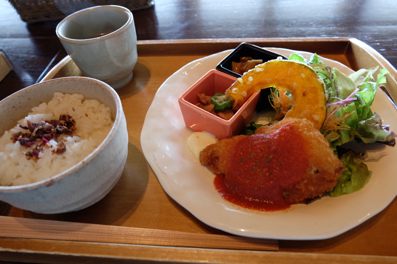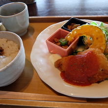 六甲ガーデンテラスの中にあるカフェです。いくつかの部屋に分かれていましたが、通された席はちょうど窓に面していて、六甲山頂からの景色を眺めることができました。食事はランチセットがあり、副菜やプチデザートも付いていておいしかったです。