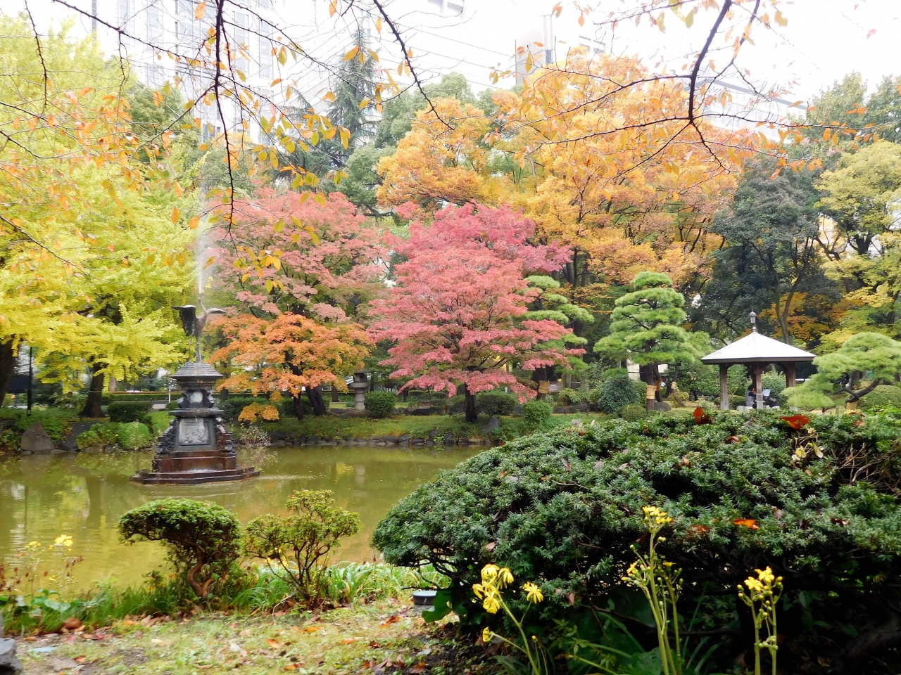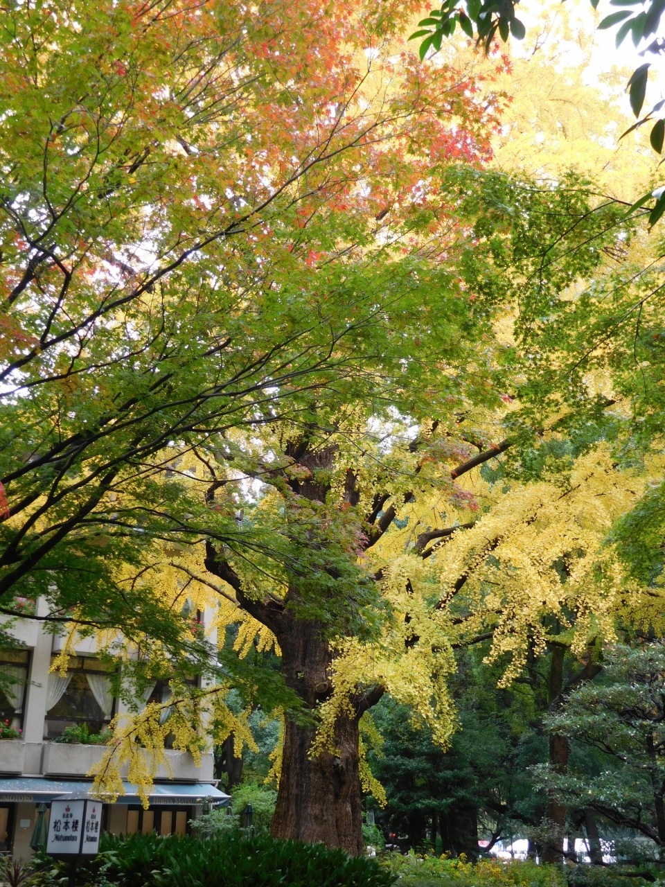 公園内には黄色に染まった銀杏も多いです。