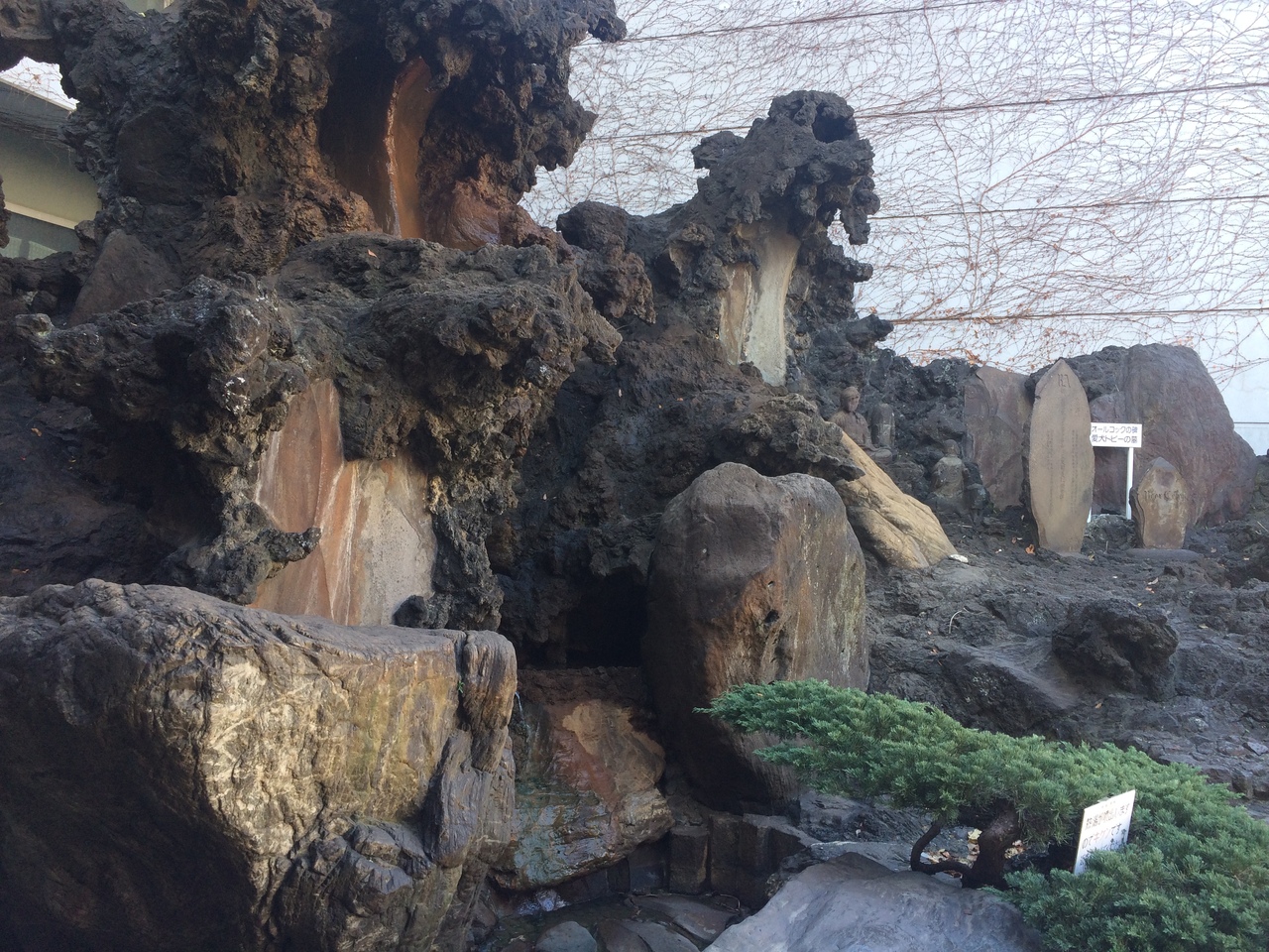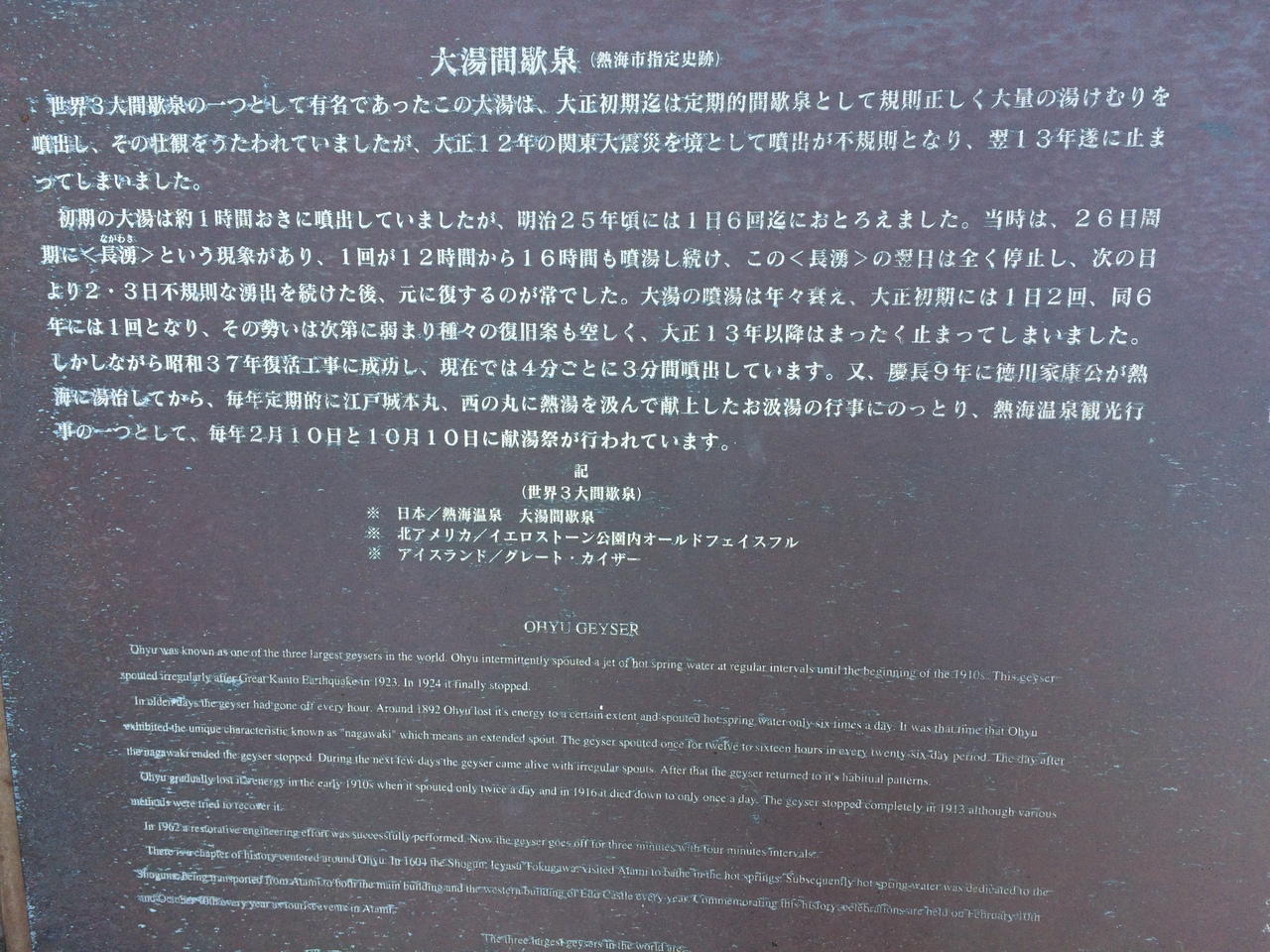 関東大震災前は定期的に温泉が噴き出していたようですが、徐々に勢いが減り昭和37年の工事により現在は4分ぐらいの間隔で湯が噴き出すようです。噴き出している時の、シュウという音が良く湯気が少し充満しました。大きな岩に囲まれています。