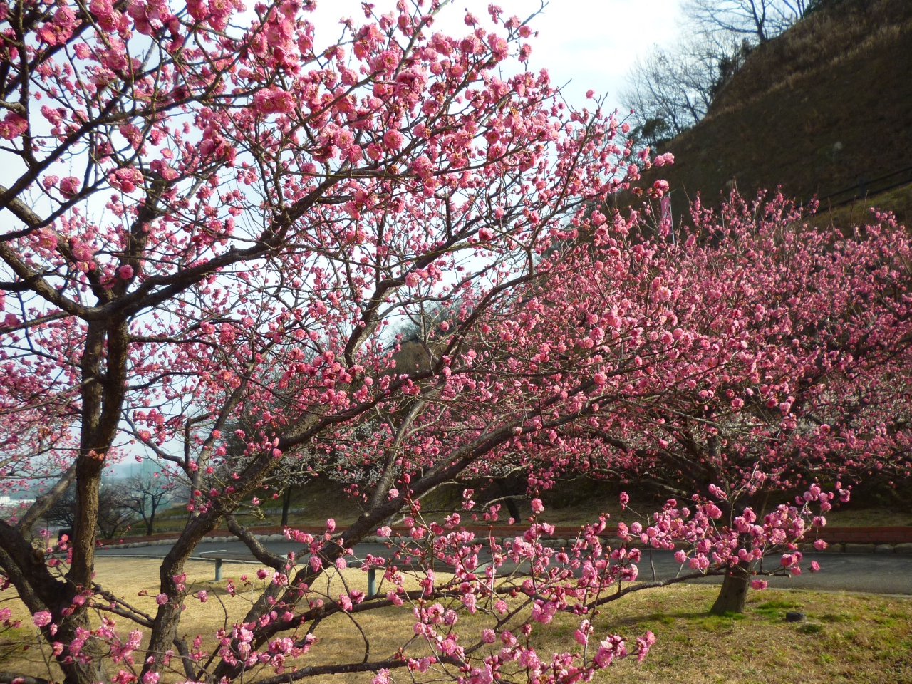 新聞に梅の花が満開の写真が出ていたので、行ってみました。住宅地の間を進むと、神崎緑地に到着です。駐車場から少し上ると、紅梅のピンク色が鮮やかに見えてきました。木の近くで一つ一つ可憐な花を眺めて、心が安らぎました。