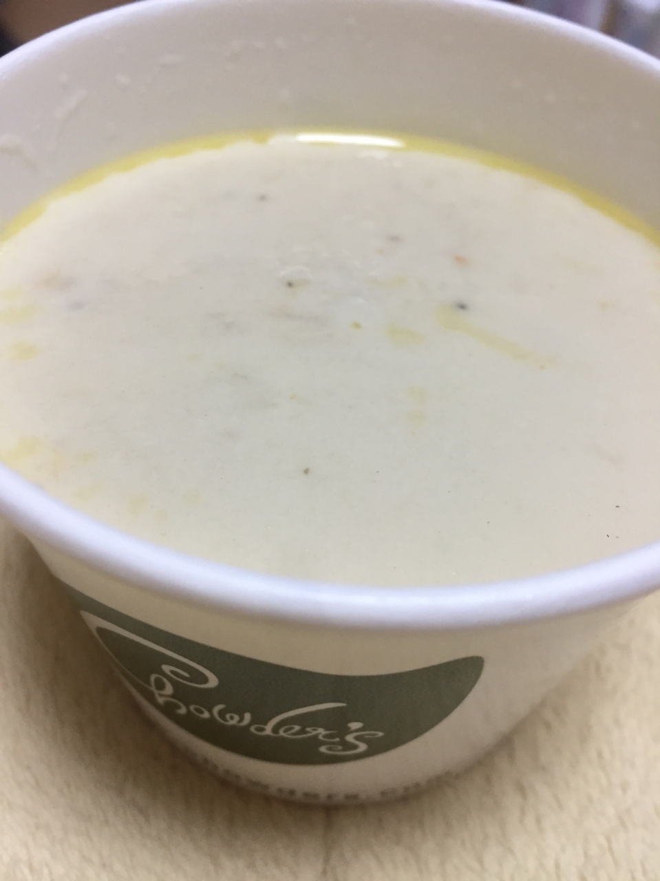 今回はレギュラーサイズのクラムチャウダーを注文しましたが、中身の具材も多く美味しかったです。