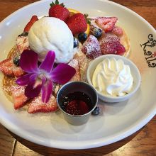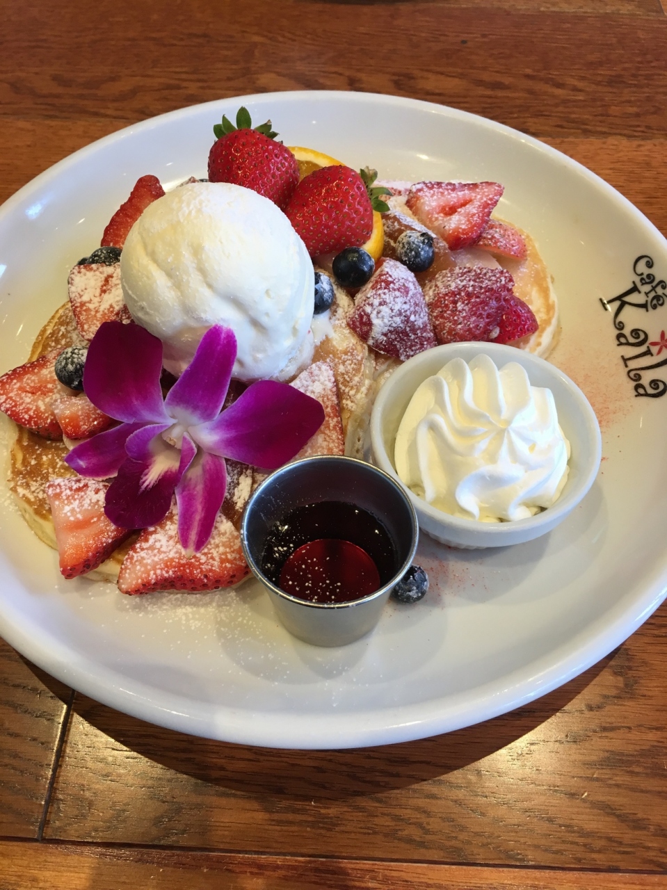 ハワイのパンケーキらしくフワフワなのにモチッとしたパンケーキは甘くて美味しかったです。