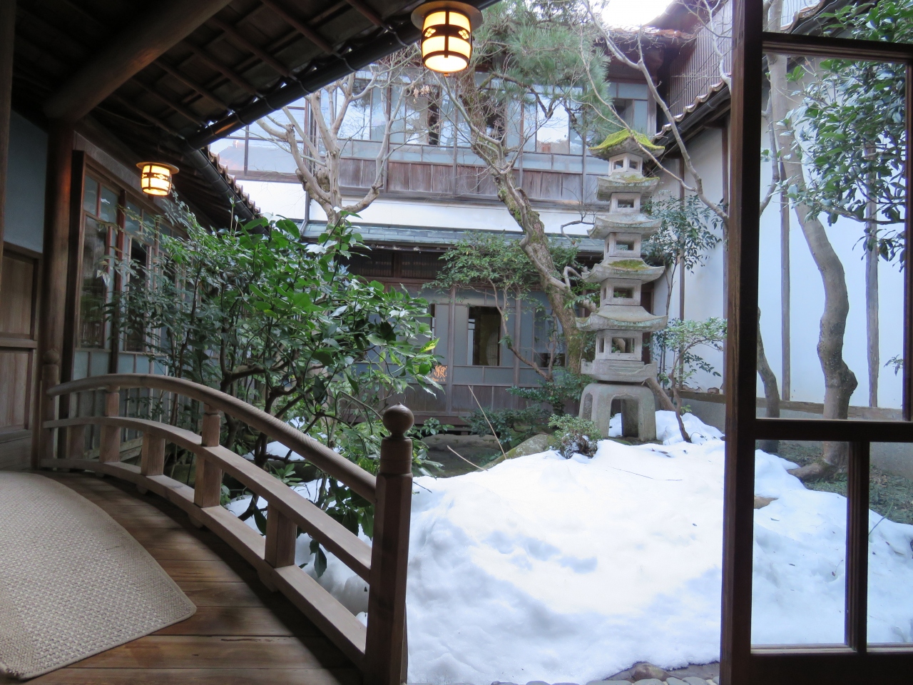大正時代に造られたガラス戸も綺麗で、中庭には木製の太鼓橋がかかり~上を歩いて体感することも出来ました。