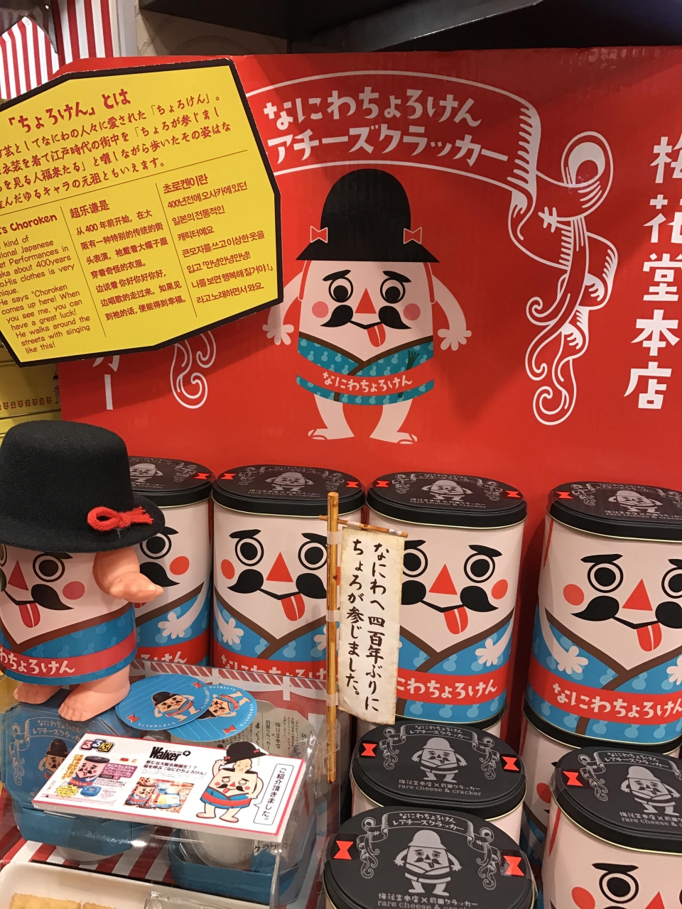 道頓堀で大阪のみやげ探しをしました。目についたのがこちらのお店。なんばにもあるいちびり庵です。くいだおれ太郎のグッズはやっぱり大阪らしいですし、喜ばれますね。あと。スナック菓子の関西限定ものも購入しました。