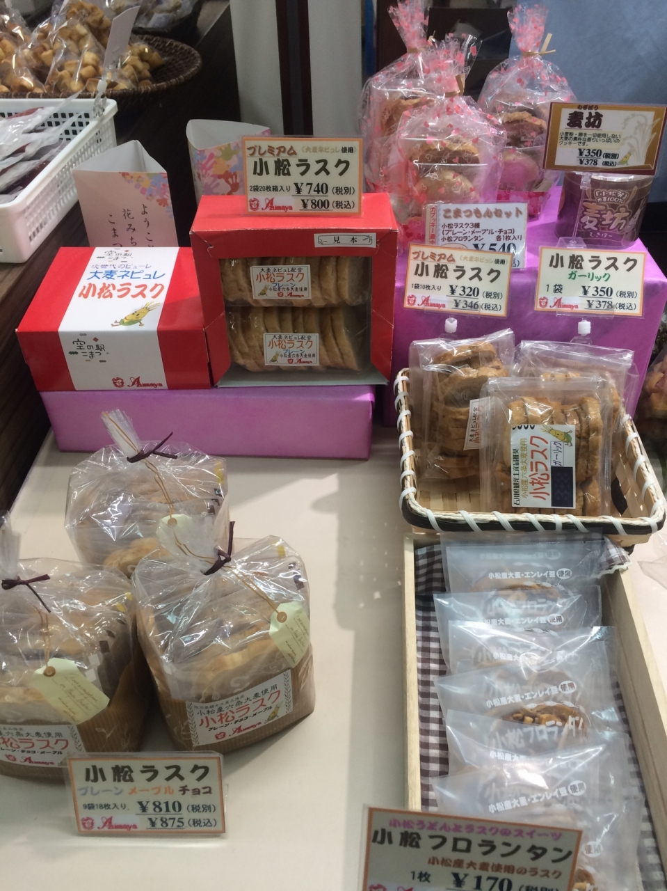 小松空港内1階にあり、空港の店としては広い面積でした。定番のお菓子類を筆頭に北陸の真ガラス多く置いてありました。入口付近に地元のではパンがいくつか置いてあり買ってみました。100円台の品がありアンパンのアンコが美味かったです。
