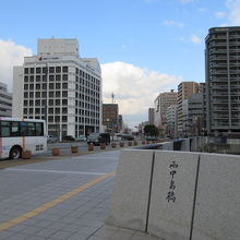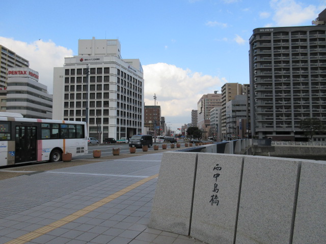 西中島橋は天神と中州を結ぶ橋で,那珂川から中洲方面の景観を楽しむことのできる場所です。クルーズ船が行きかう姿を楽しむこともでき、夜に川沿いに屋台の並ぶ風景を眺めると、福岡に来ているという実感が湧いてきます。それと、橋の袂(天神側)には水鏡天満宮や福岡文学館があるので、併せて見学できます。