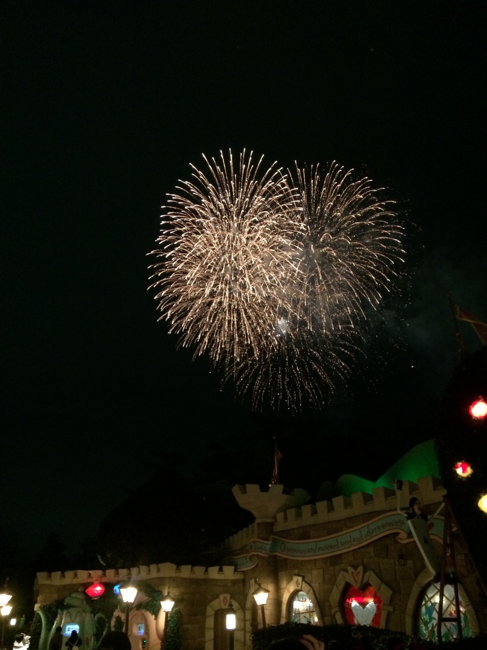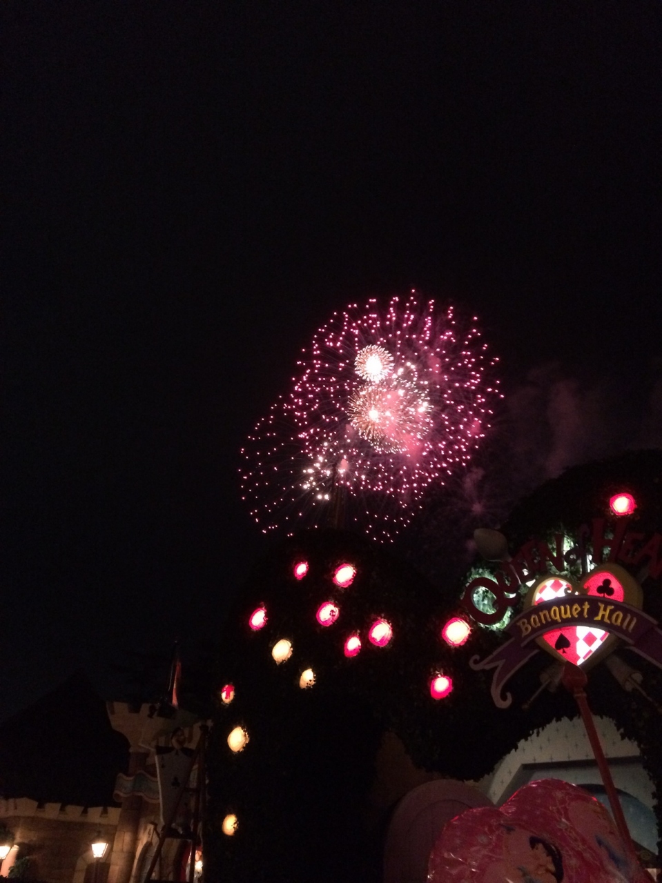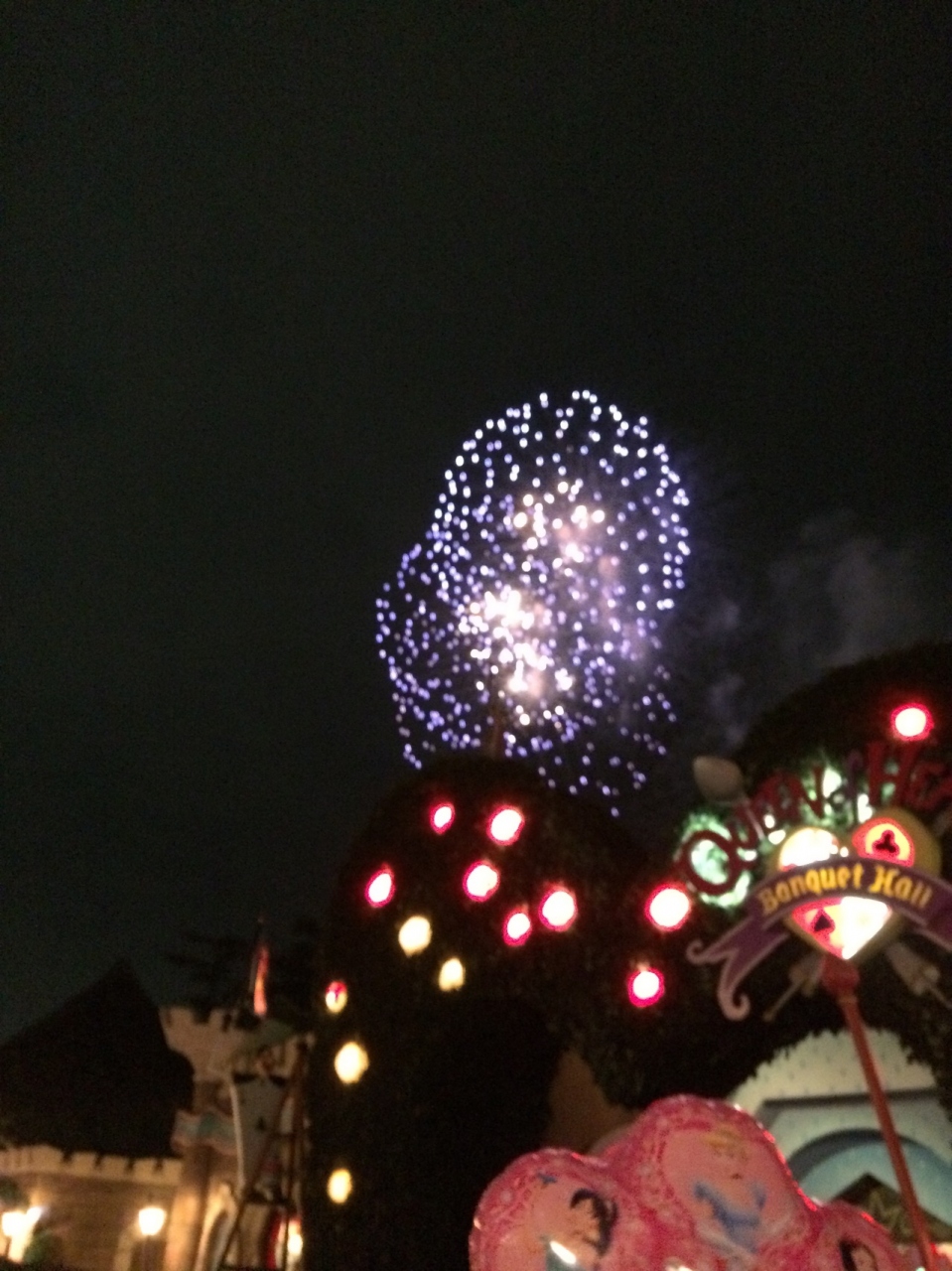 イッツアスモールワールドから出たところでちょうど花火が始まりました。