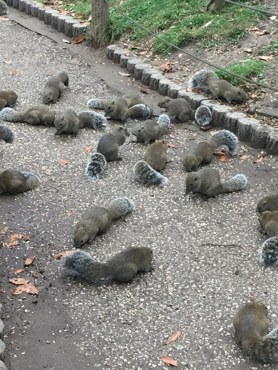 平日の午前中、雨上がりの日に行きました。お客さんが少なかったようで、リス達がお腹を空かせて待ち構えていました。放し飼い広場では、100円でひまわりの種が売っています。うっかりしていると袋ごとひまわりの種を持っていかれたり、種をあげてると2,3匹後ろから飛びついてきたり、可愛いというより恐怖を感じてしまいました…。