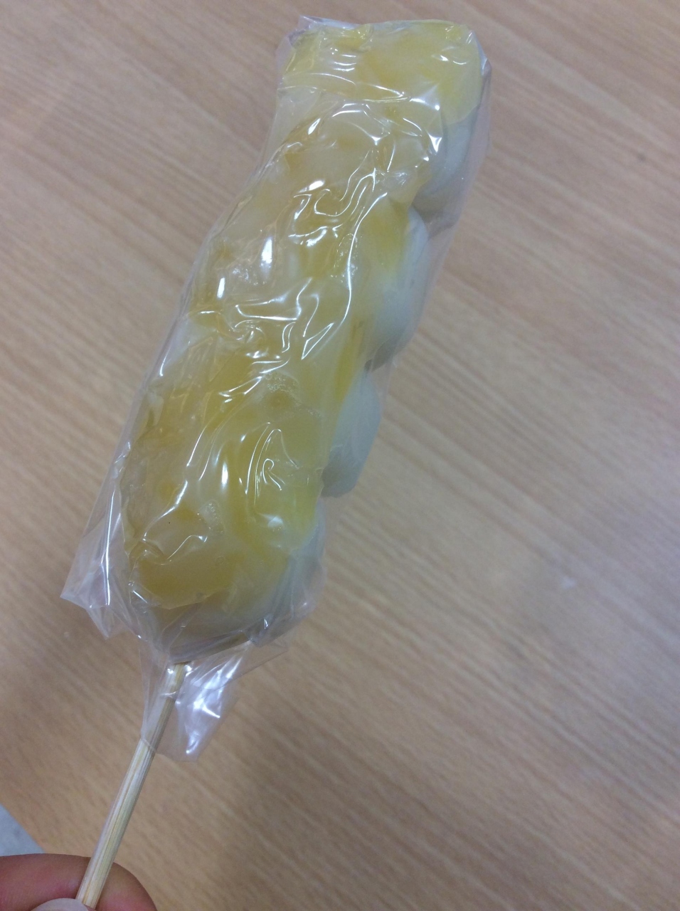 リンゴのお団子は珍しいと思うのだが、歯ごたえのあるリンゴの粒を感じる餡は美味しいのだがお餅が少し固かったのが残念。