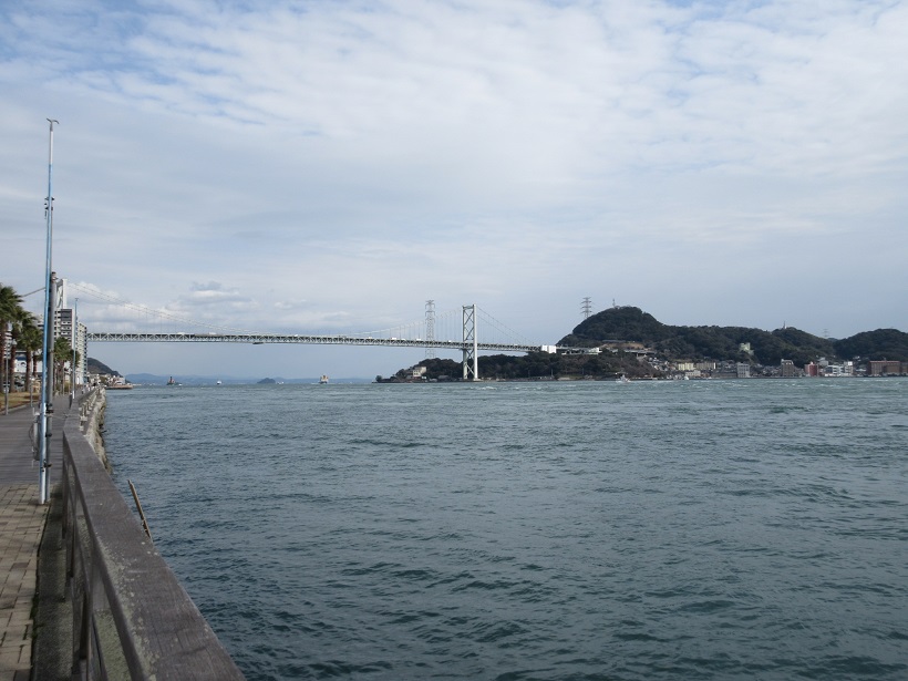 九州と本州を隔てる関門海峡。唐戸からは関門海峡をコンテナ船が行き交う姿が間近に見られます。またカモンワーフから門司港までは関門連絡船が頻繁に出ており、バスに乗るような感覚で対岸の門司に渡ることができます。揺れが激しく、壇ノ浦の合戦の時代の小舟では渡るのは難儀したであろうと思われました。