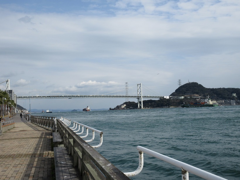 1973年に開通した、本州の下関と九州の北九州市を結ぶ巨大なつり橋です。全長1068mの橋は、下から見上げるととても迫力があります。この橋の海面からの高さは61mほどあり東京のレインボーブリッジより高いです。ただ、クァンタム・オブ・ザ・シーズのような最新鋭の大型クルーズ船は高さが70mあまりあるので、この橋の下を潜れないということになります。時代の変遷を感じました。