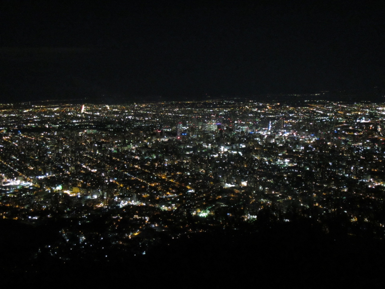 市内はおろか、石狩平野が一望できる藻岩山展望台からは、その花火の様子が見られますが、どうしても距離が遠く、小さくなってしまいます。