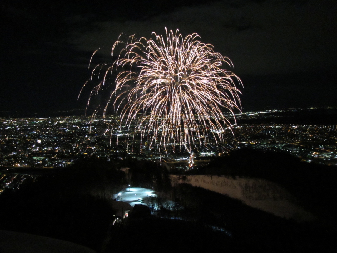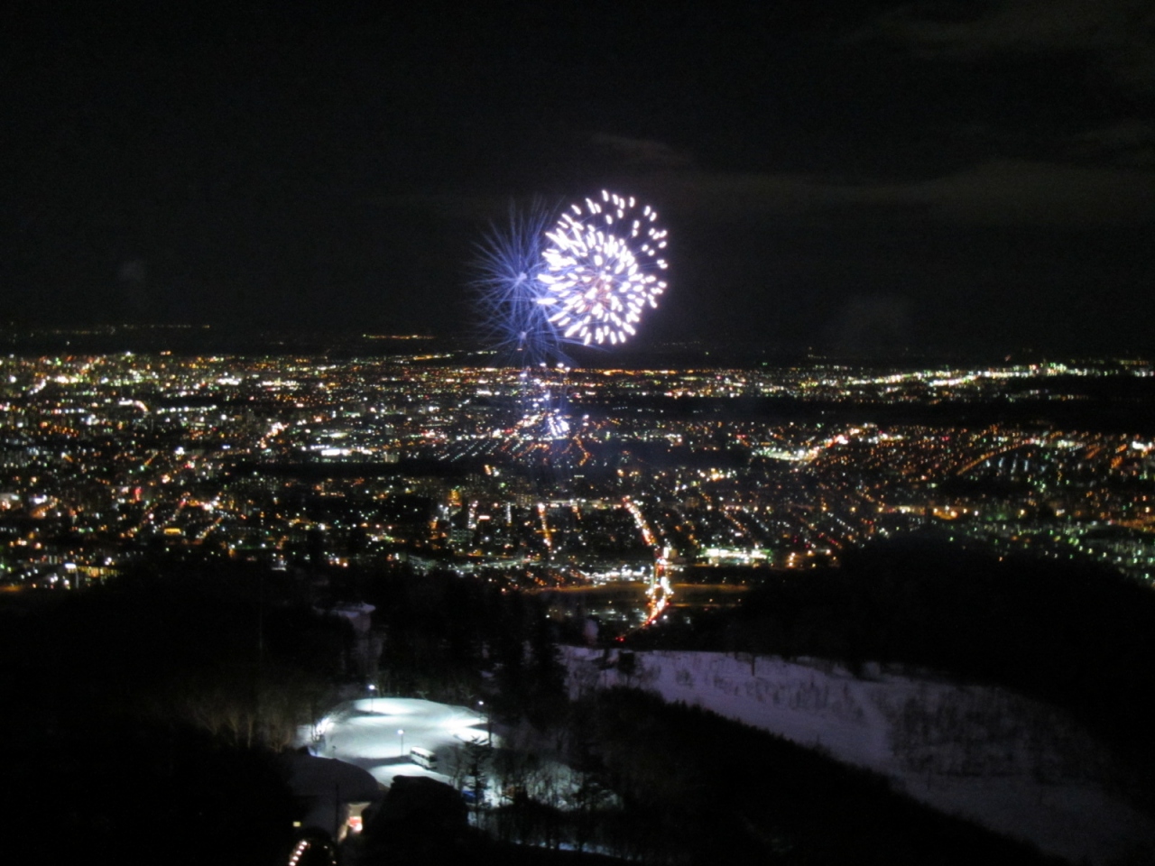 そして、最も近くで行われるのが、2月上旬に藻岩山スキー場で行われる“雪と虹のまつり”の花火で、近くで見えるのですが、打ち上げ数がわずかで、すぐ終わってしまいます。