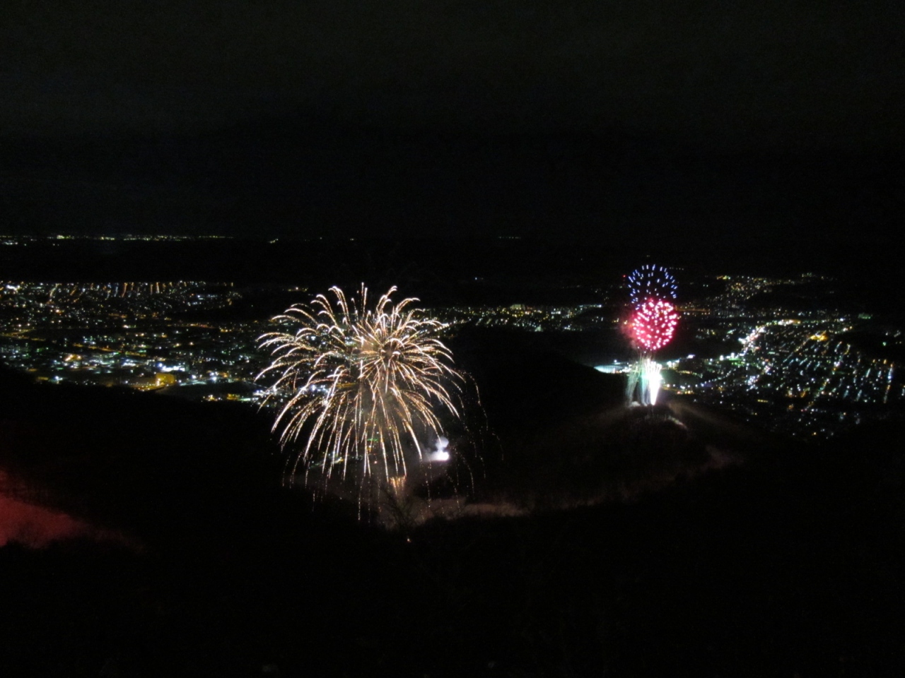 そのかわり、宝石を散りばめたような夜景をバックにあがる美しい花火を見ることができます。