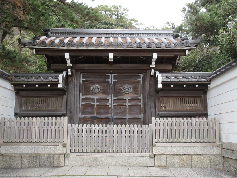 赤間神社から日清講和会議記念館に向かう途中、安徳天皇陵が右手にありました。菊の御紋の施された門が目印です。日本人ならだれでも知っている平家物語にある通り、壇ノ浦の合戦で源氏方に追い詰められ、船から身を投げ命を絶った幼い天皇が安徳天皇で、まさに悲劇のストーリーです。隣の赤間神社を見学していた海外からの観光客も、流石にここは通り過ぎて行きました。
