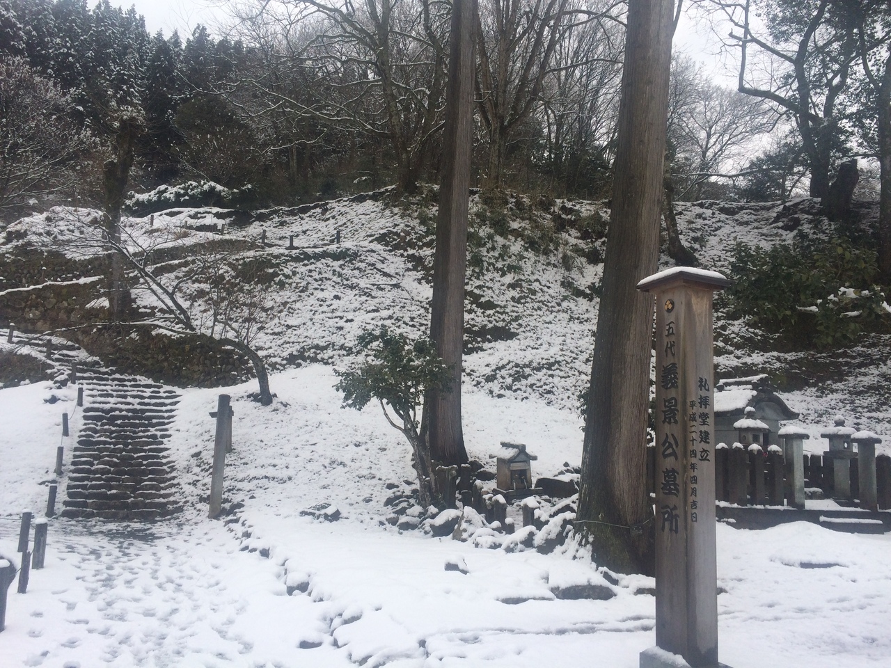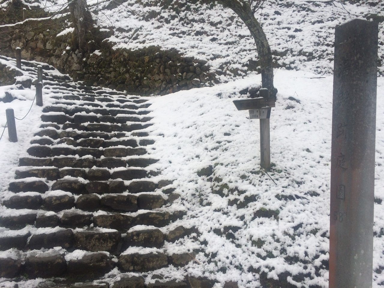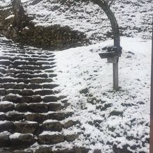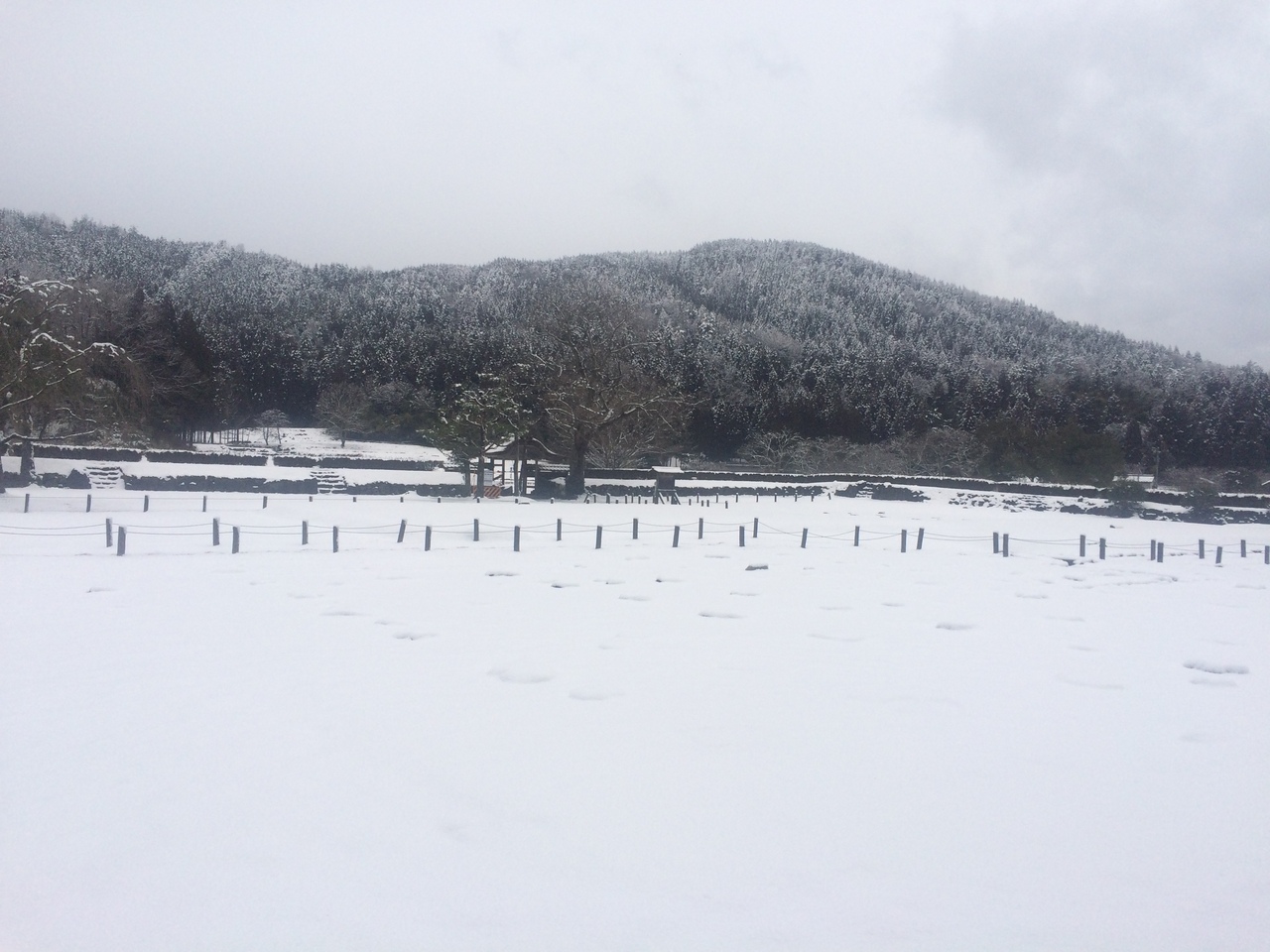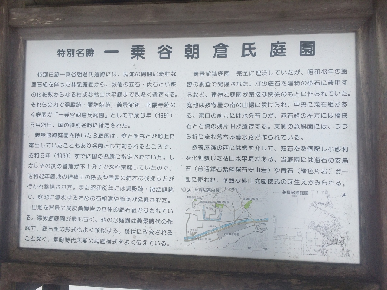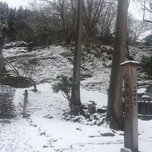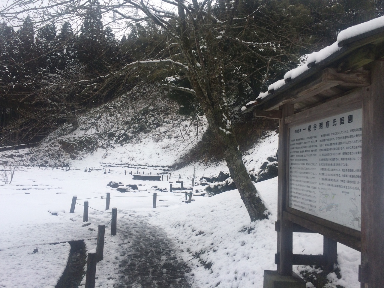 一乗谷朝倉氏遺跡の唐門を潜ったあたりの場所で4つの庭園を指すらしく歩いて廻ることが出来ます。雪のためあまり良くは見れませんでしたが小高い丘になっていて池があり石が良い感じで配置されているところもありました。
