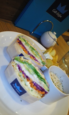 サンドウィッチは、ワッフルサンドです。生地があまくアボガドとエビとの絶妙な感じは他のお店ではないかも。。。ただし、ボリュームは多くないため、男性には物足らないと思われます。