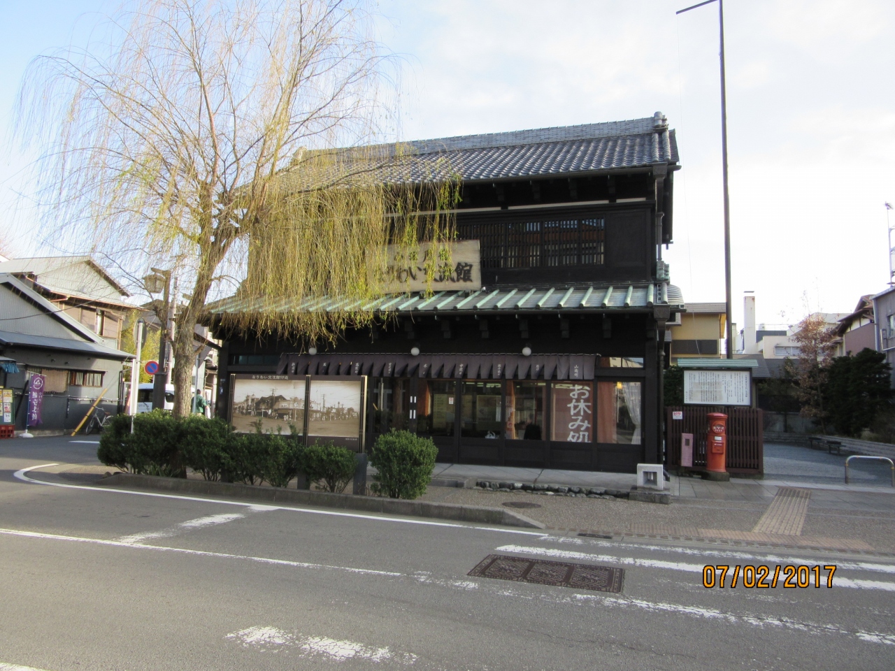 小田原城と街並みを歩くこと約1時間30分、堀端を歩いて大通りに出るとこの建物が目についた。どうやら休憩処のようなので恐る恐る入ってみた。中には椅子の席と畳の大きめな部屋があり、女性スタッフがいた。入ると自動の給水器とコップがあったが、スタッフが寒いからと熱いお茶をふるまってくれた。大変ありがたかった。昔は【網の問屋】だったそうで、現在は小田原市が休憩所として運営しているとのことであった。
