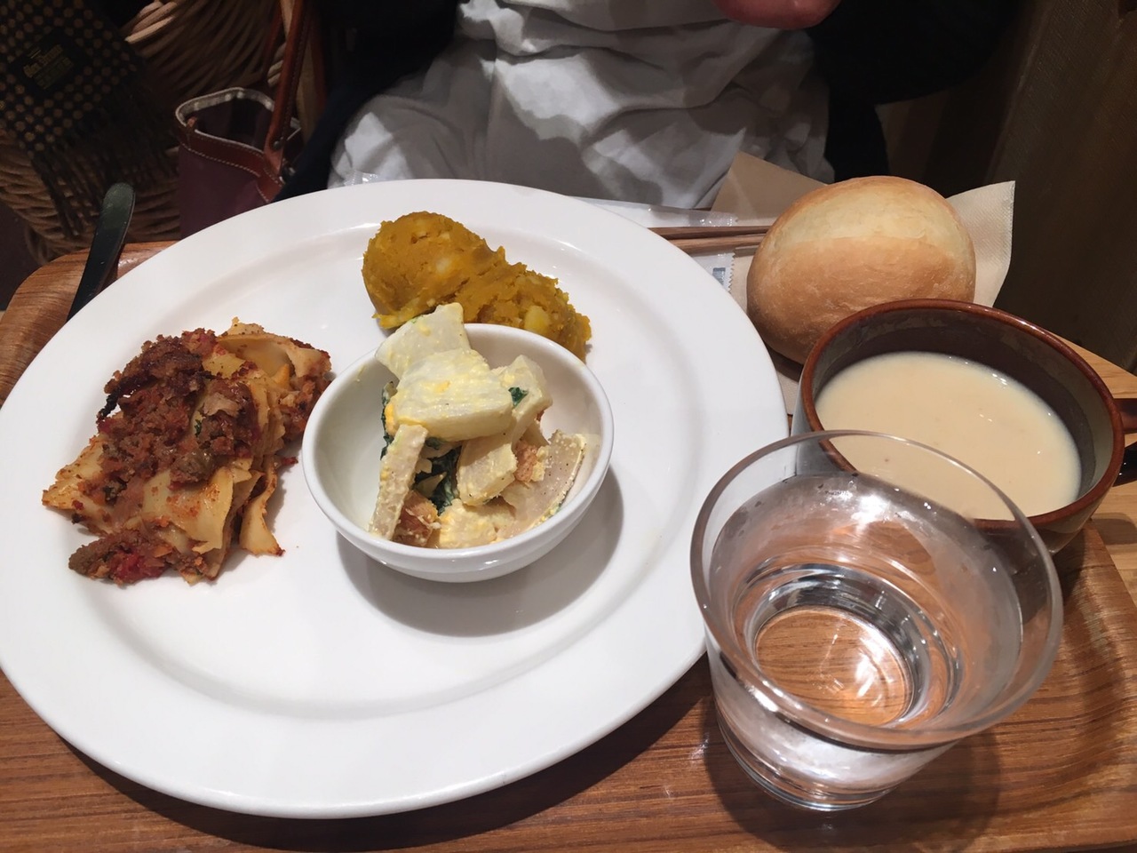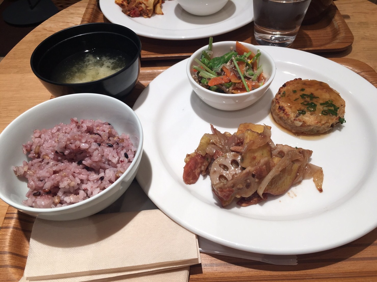 ここのメニューは健康志向で大好き、惣菜もぜんぶおいしそうで家でマネしたくなります。サラダの種類が豊富です。