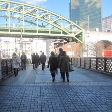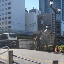 現在の橋は、昭和3年(1928)に架けられたもので、長さ22.7m、幅30.1m、コンクリート橋で、中の車道を挟み両側に歩道のある幅の広い橋です。欄干の模様がしゃれています。