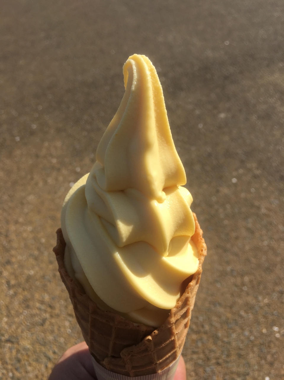 昼食のあとは天気がよかったので外をぶらぶら。焼きいも味のソフトクリームもやわらかい日差しの中いただきました。