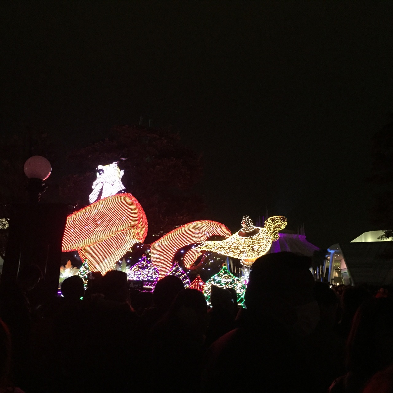 東京ディズニーランドの夜の定番パレード。今回はシンデレラ城前で見ました。キャラクター達は遠かったのですが、グルーッと見渡せてとても素晴らしかったです。意外と長いパレードなので時間には余裕を持った方がいいです。
