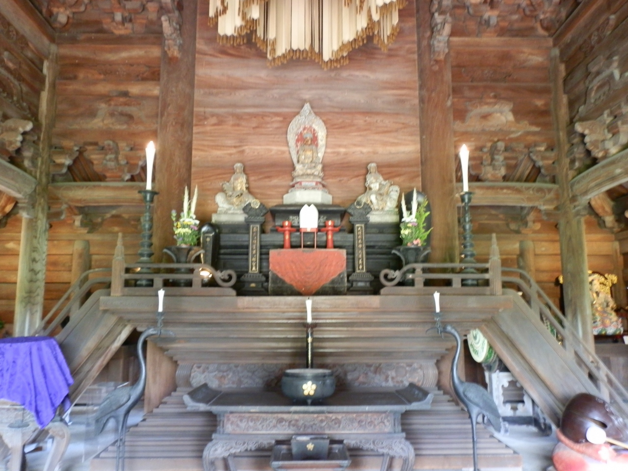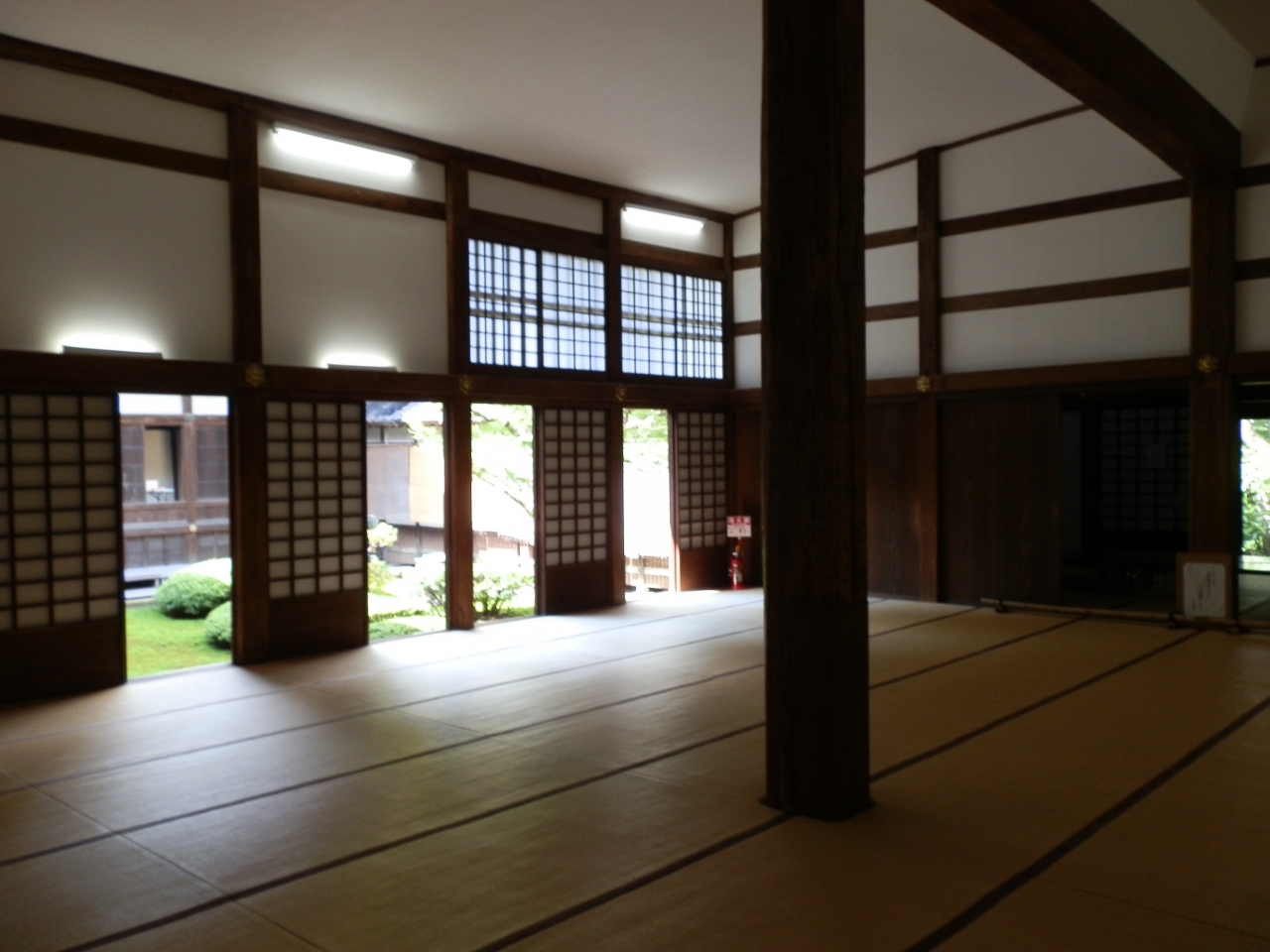 瑞龍寺の顔と言えば中央に位置する「仏殿」です。山上善右衛門嘉弘の最も心血を注いだ力作の一つで、総欅造りが印象的でした。