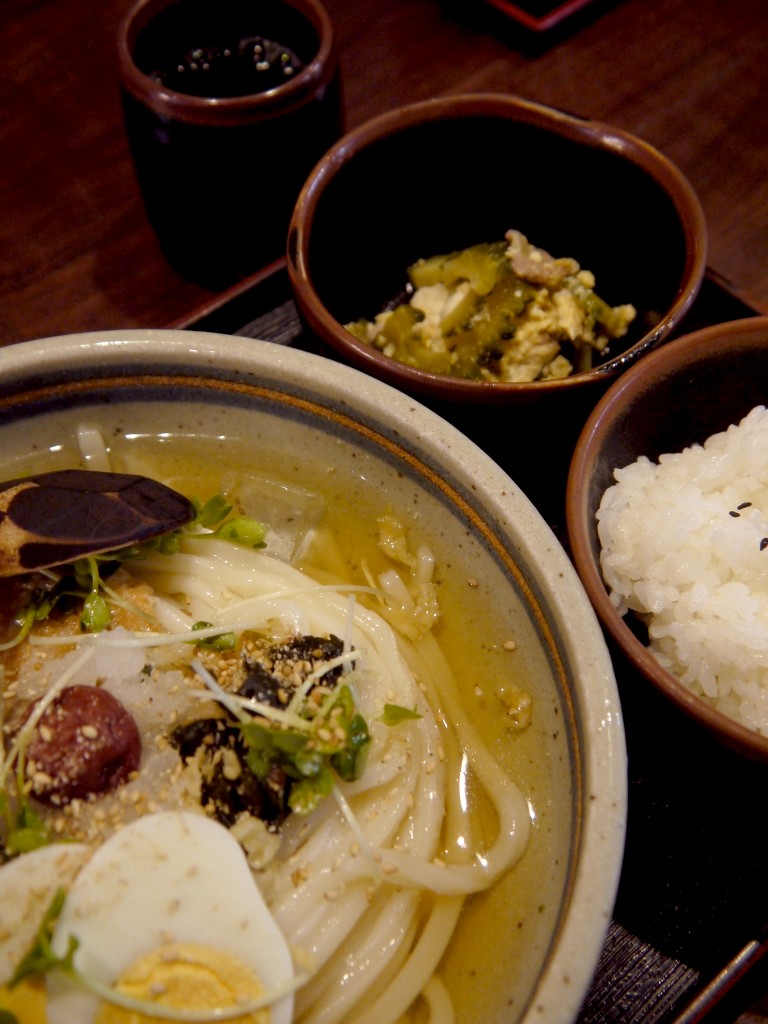 うどんらしからぬカラフルさと、さっぱりしたダシが特徴。