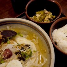 メインとなるうどんは、モチモチで、コシがある。讃岐風っぽいが、下手な讃岐うどんよりコシがあるのでは、と思う。そんな事もありボリューム感たっぷり。